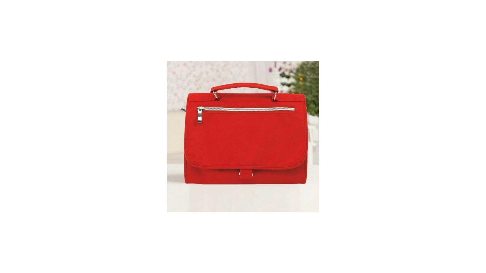 Geantă cosmetice Star cu 5 buzunare cu fermoar, oglindă detaşabilă, mâner, cârlig metalic pentru agăţat. Dimensiuni 25 x 8 x 18 cm 25 x 59 cm. Culoare: Rosu Material: Poliester