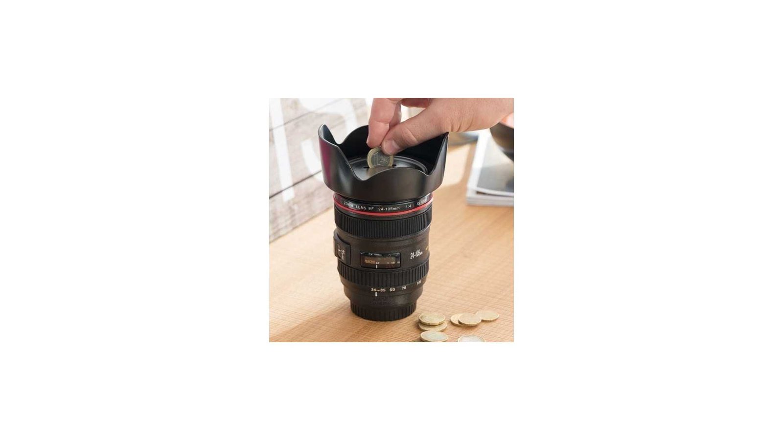 Pusculita Obiectiv Foto este cel mai bun cadou pentru amatorii de fotografie. Este o pusculita care arată ca un obiectiv foto profesionist. Este atât de realist încât oricine va crede că este real, la prima vedere. Fabricată din plastic...