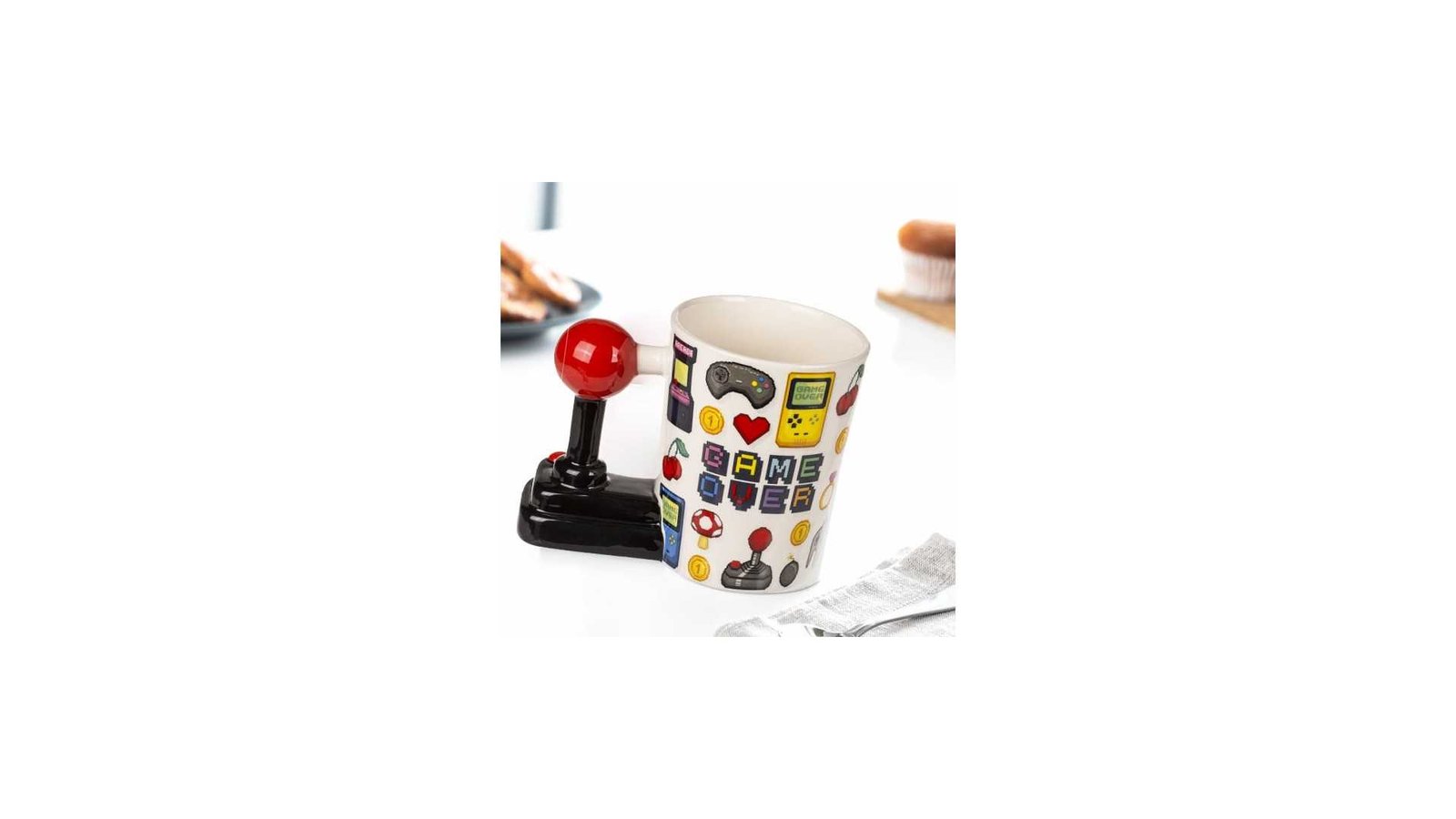 O cana ideala pentru a o darui iubitorilor de jocuri video. Maneta: Joystick: Fabricata din ceramică Design modern si original Capacitate aprox.: 400 ml Nu este potrivita pentru masina de spalat vase Dimensiuni aprox.: 15 x 11,5 x 8,5 cm