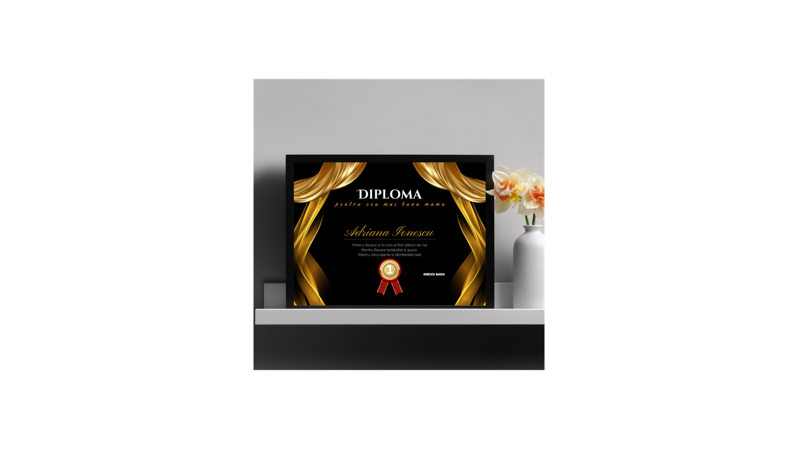 Diploma pentru cea mai buna mama.Cadou original pentru cea mai buna mama. Dimensiuni: Rama si fotografie A3 sau A4