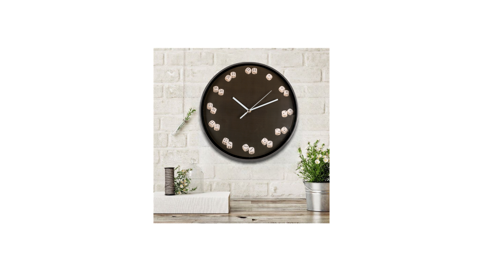 Ceas perete zaruri cu un design aparte ce poate fi un cadou special. Cifrele ceasului sunt reprezentate de zaruri. Caracteristici: diametru: 30 cm culoare rama: negru material: plastic