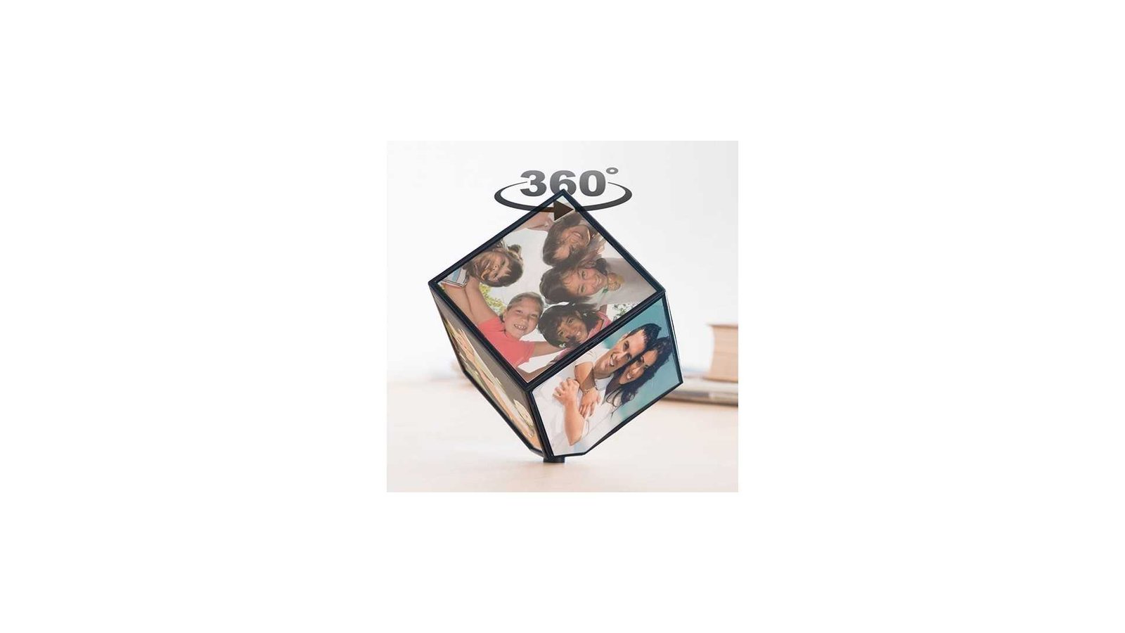 Cu 6 spatii pentru fotografii, Rama foto cub rotativ va ofera mai multe posibilitati decât ramele individuale. Rama foto cub rotativ necesita 1 baterie AA, care il face sa se roteasca, decorand orice suprafata. Acum puteti pastra amintirile cu rude...