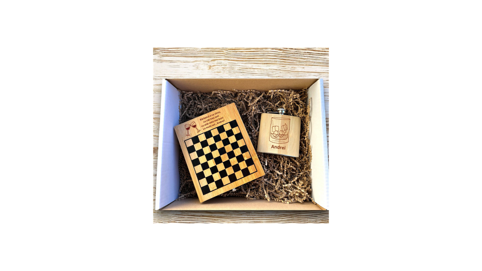Cadou pentru barbati personalzat - Accesorii vin SAH + plosca