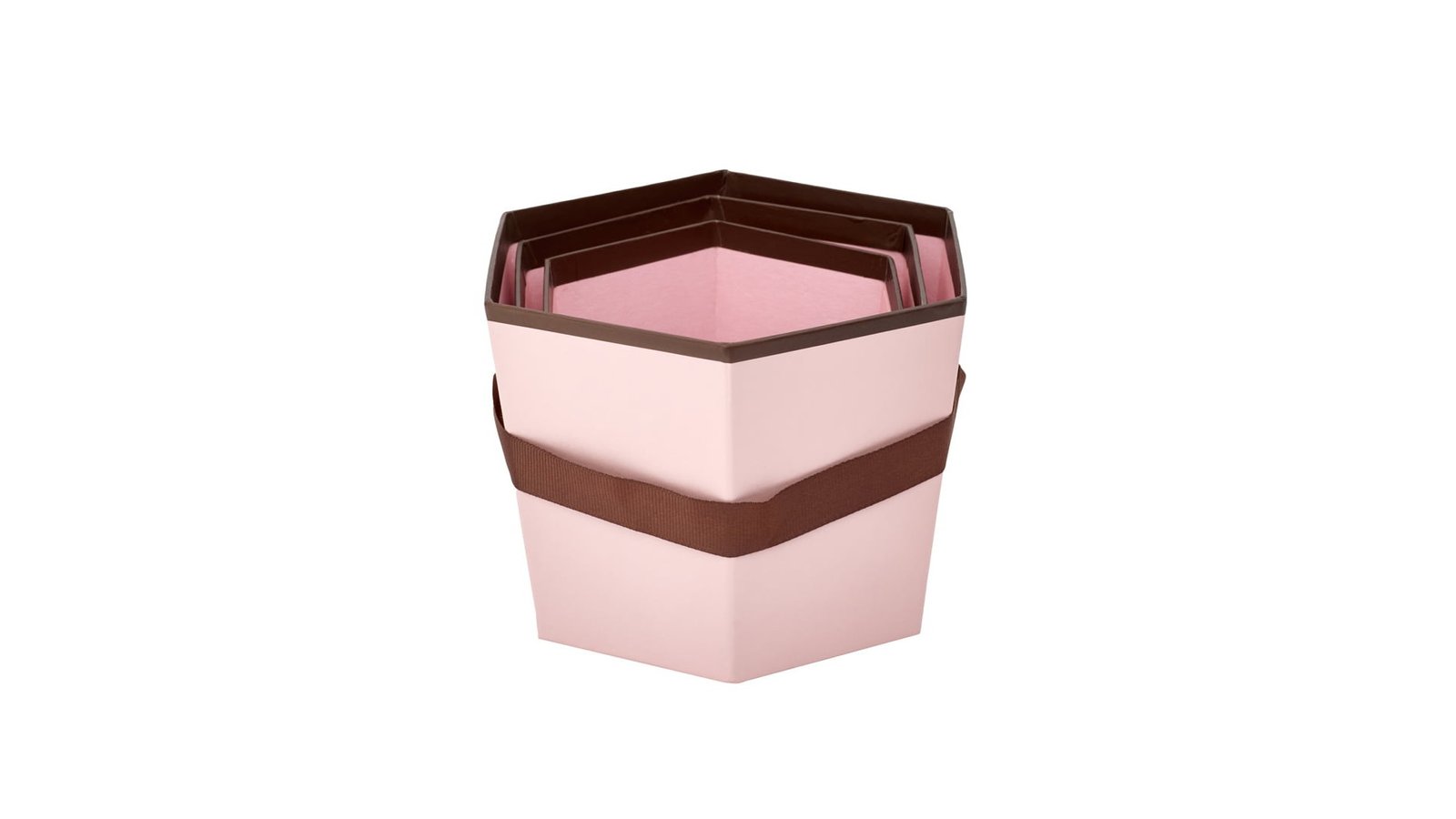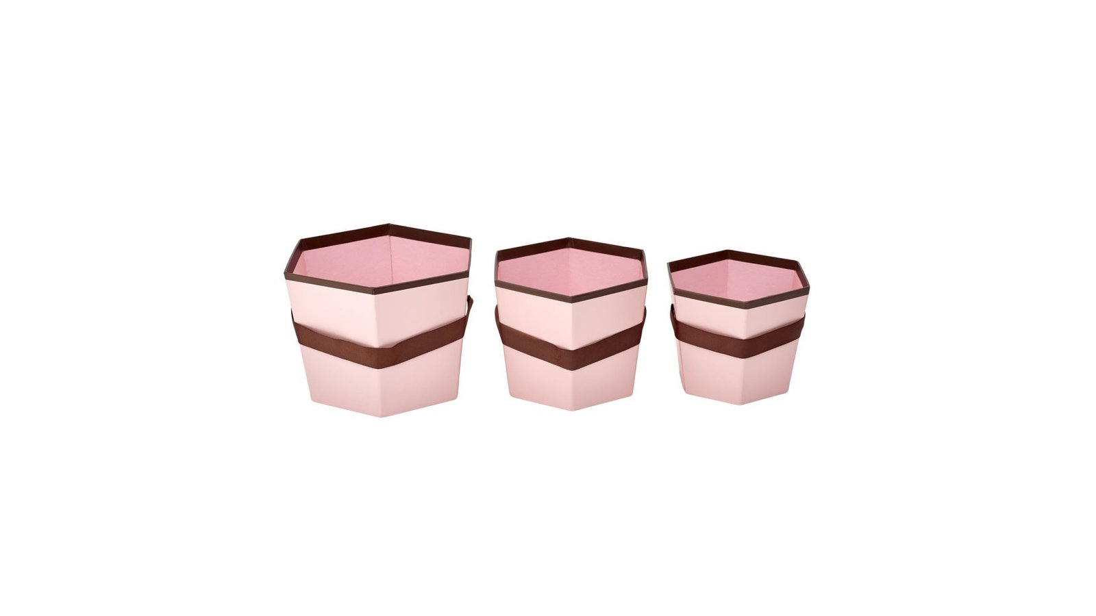 Set 3 cutii hexagon cu mâner - roz se pot folosi pentru ambalaje de flori, buchete, trandafiri, cadouri, mărturii, produse handmade, decorațiuni și multe altele perfecte pentru evenimente cum ar fi: nunți, botezuri, Crăciun, Paște, Valentine's Day, mărțișor, 8 martie, petreceri pentru copii, zile de naștere, etc. set 3 cutii de dimensiuni diferite mâner din satin
