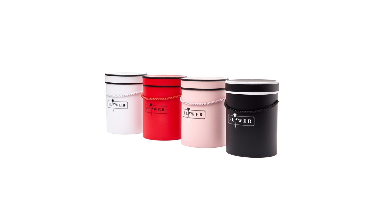 Cutie cilindrică mică cu mâner - alb se poate folosi pentru ambalaje de flori, buchete, cadouri, produse handmade, decorațiuni și multe altele perfectă pentru evenimente cum ar fi: Crăciun, Moș Nicolae, Valentine’s Day, mărțișor, zile de naștere, etc. mâner din sfoară împletită
