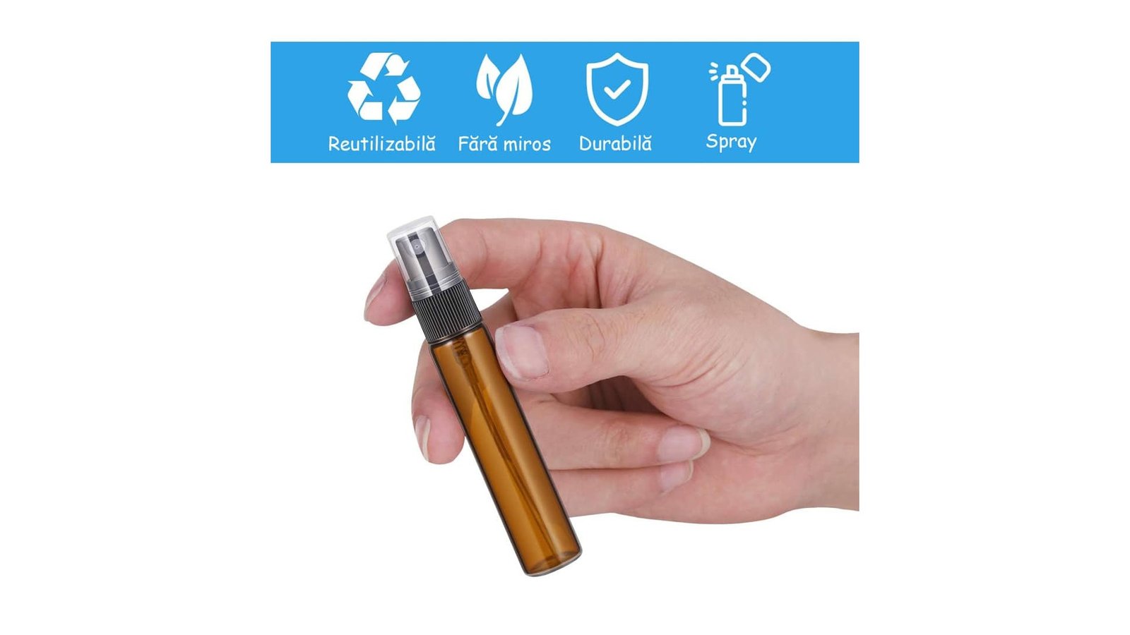 Sticluță ambră reutilizabilă cu spray și capac - 10ml