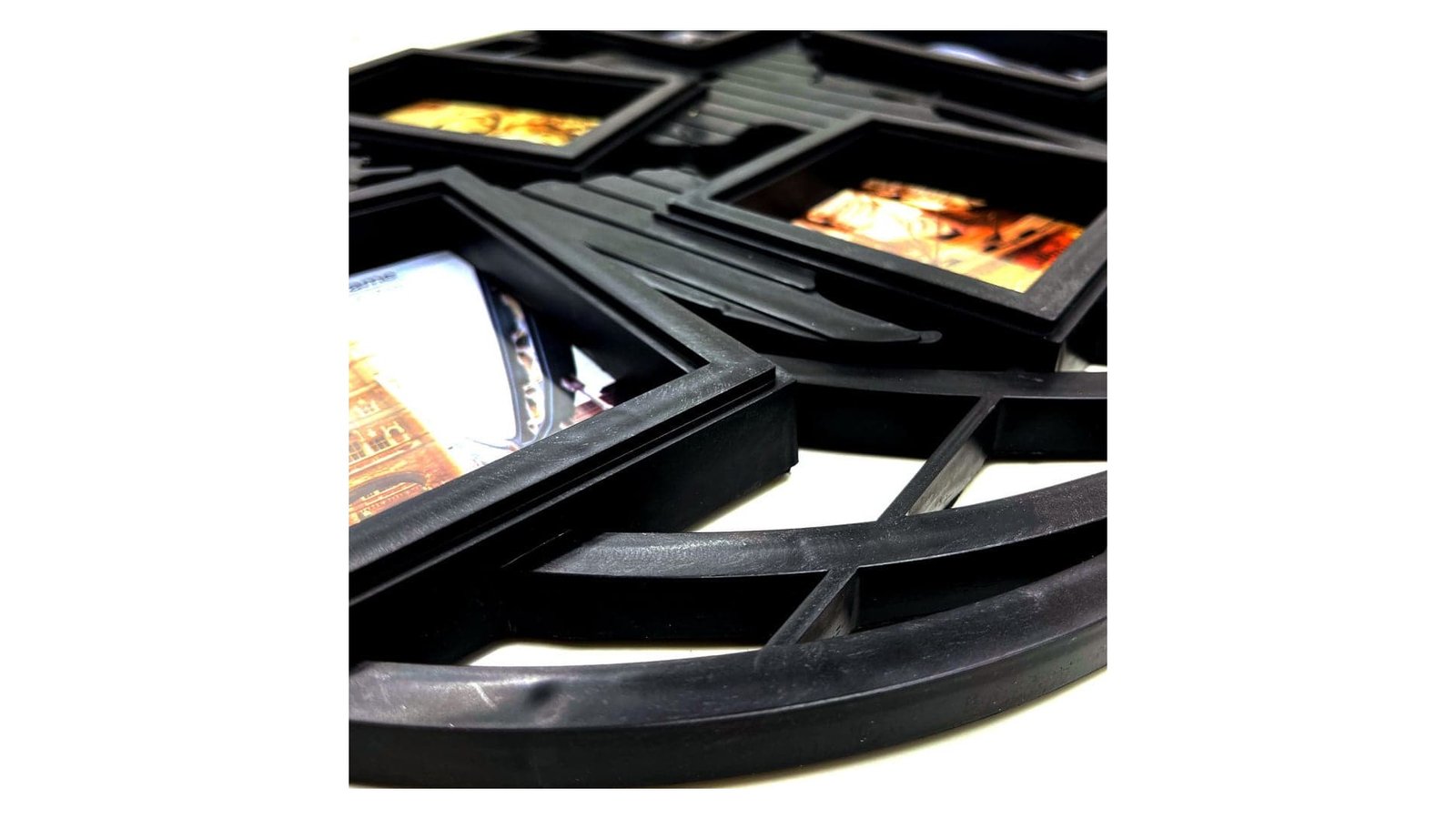 Ramă foto colaj neagră 5 poze - model Harta Lumii pozele se introduc prin spatele ramei rama se agață în agățătoarea ce se găsește pe spatele ramei se pot introduce cinci poze, trei de 10x15cm si două de 10x10cm temă ramă: zi onomastică, zi de naștere, membru nou al familiei, ziua mamei, ziua tatălui, aniversare, Valentine's Day, mărțișor, Crăciun, Paște rama este fabricată din plastic printr-un procedeu care se numește injecție de plastic pe matriță, astfel ramele pot lua orice formă dorită ramele sunt ambalate în folie de plastic și cutie de carton ce garantează siguranța la transport cutiile de carton pot fi reasamblate pentru a reintroduce rama în cutie după ce este personalizată
