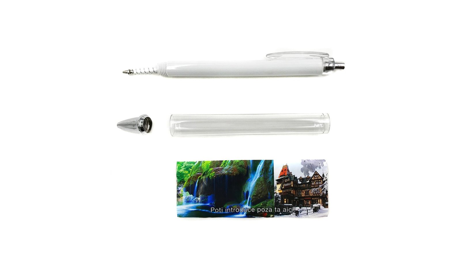 Pix inserție foto pix din plastic ce se poate personaliza prin introducerea unei poze în interiorul carcasei poza se introduce după ce se detașează vârful poza din interior este protejată de carcasa de plastic a pixului dimensiune poză: 9,8x3,9cm se poate folosi pentru: grădinițe, școli, licee, zi onomastică, zi de naștere, ziua mamei, ziua tatălui, aniversare, Valentine's Day, mărțișor, Crăciun, Paște produs ambalat în pungă de plastic