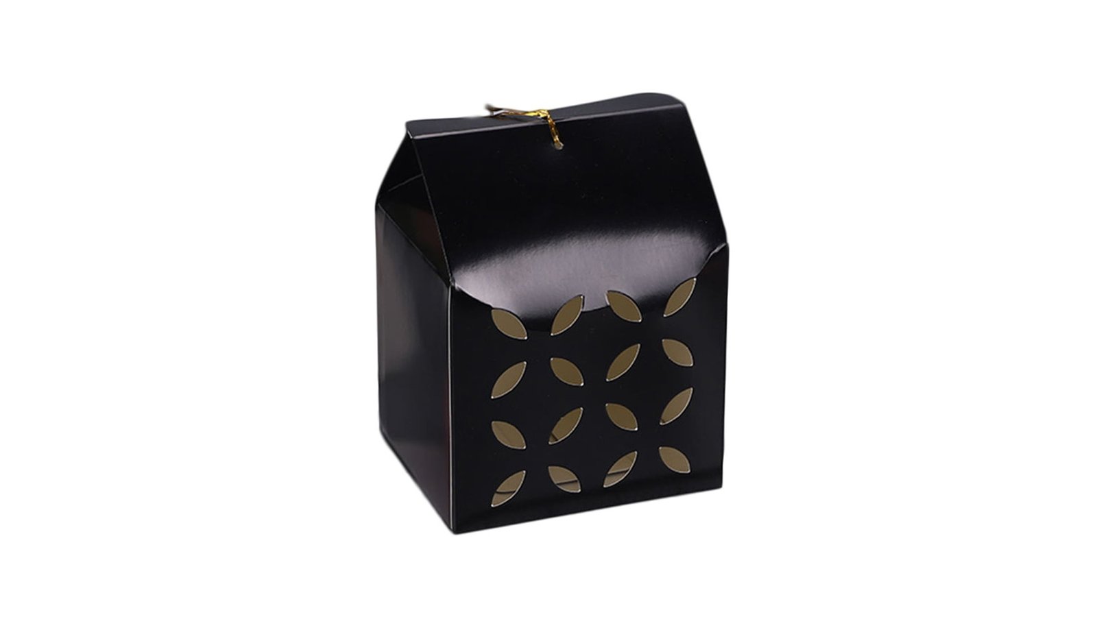 Cutie pătrată perforată - negru cutie din carton, folosită în principal pentru ambalarea cănilor, dar se poate folosi si pentru cadouri, mărturii, produse handmade, decorațiuni și multe altele perfectă pentru evenimente cum ar fi: nunți, botezuri, Crăciun, Paște, Valentine’s Day, mărțișor, 8 martie, petreceri pentru copii, zile de naștere, etc Cutiile se închid cu o sârmă decorativă ce vine în pachet Înălțimea cutiei este 10+4 cm. Cutiile se comercializează dezasamblate pentru a economisi spațiu.
