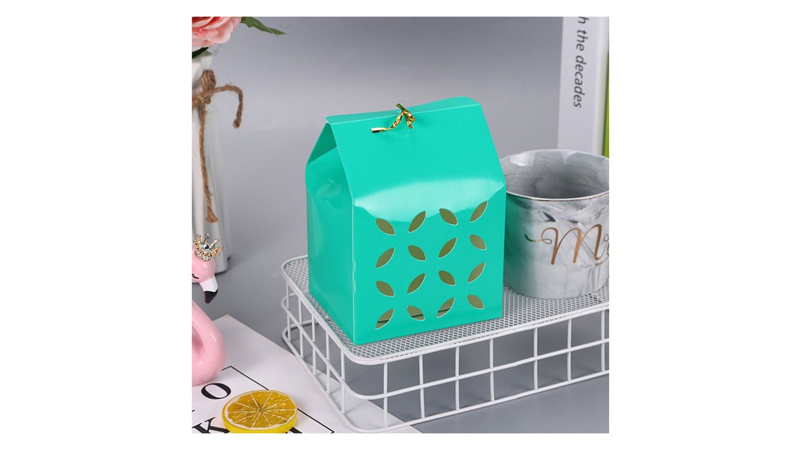 Cutie pătrată perforată - verde cutie din carton, folosită în principal pentru ambalarea cănilor, dar se poate folosi si pentru cadouri, mărturii, produse handmade, decorațiuni și multe altele perfectă pentru evenimente cum ar fi: nunți, botezuri, Crăciun, Paște, Valentine’s Day, mărțișor, 8 martie, petreceri pentru copii, zile de naștere, etc Cutiile se închid cu o sârmă decorativă ce vine în pachet Înălțimea cutiei este 10+4 cm. Cutiile se comercializează dezasamblate pentru a economisi spațiu.