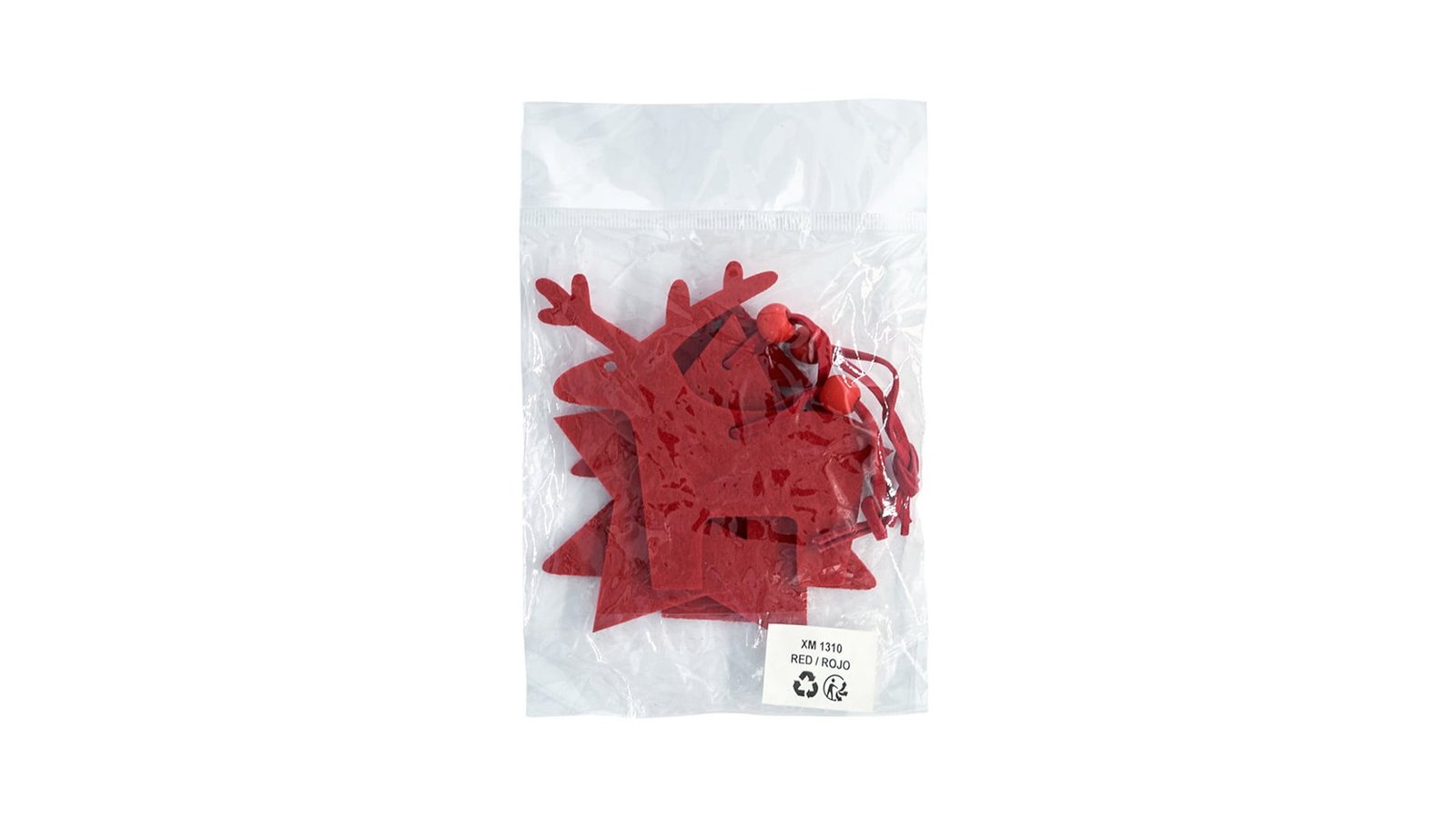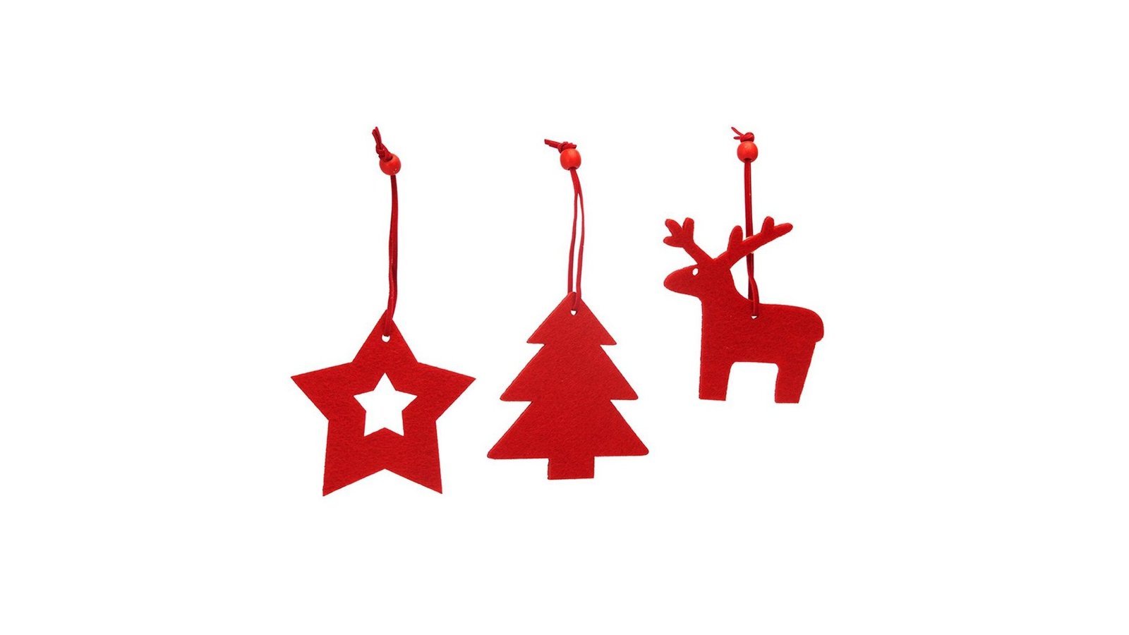 Set 3 ornamente de brad - roșu Produs din material textil tip pâslă, cu șnur maro cu mărgea roșie în capăt Material pufos Decorațiunile de brad sunt ambalate în pungă de plastic Potrivit pentru perioada sărbătorilor de iarna, poate fi folosit ca decorațiune de brad sau pentru a confecționa decorațiuni specifice