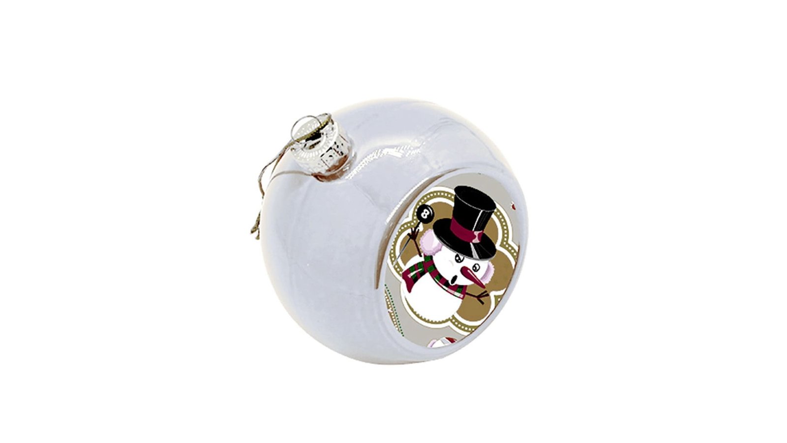 Glob sublimabil pentru brad 6cm Globul se poate personaliza și fără sublimare, în loc de plăcuța de sublimare se poate lipi o fotografie pe hârtie pe partea adezivă a globului Prin sublimare se personalizează partea metalică și apoi se lipește pe partea plată a globului. Globurile sunt prevăzute cu un strat autoadeziv pe care se lipește partea metalică Atenție! Îndepărtați folia de protecție de pe partea metalică Se pot imprima la prese plane sau vacuum, dimensiune de printare este de 3,5 cm Ideale pentru a crea cadouri unice
