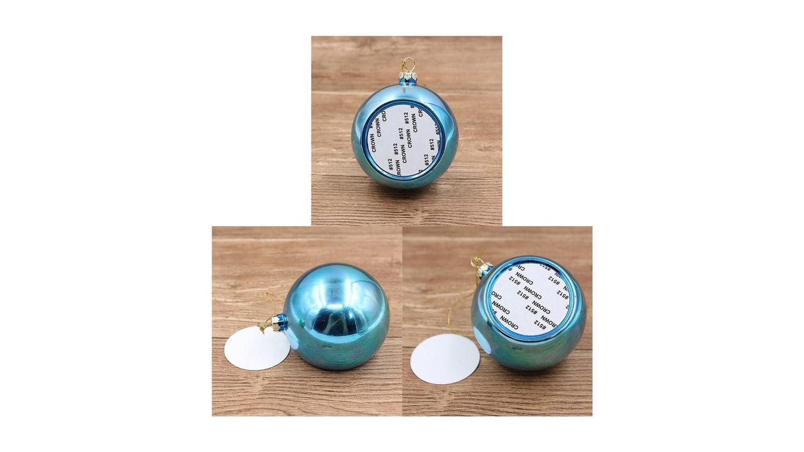 Glob sublimabil pentru brad 6cm Globul se poate personaliza și fără sublimare, în loc de plăcuța de sublimare se poate lipi o fotografie pe hârtie pe partea adezivă a globului Prin sublimare se personalizează partea metalică și apoi se lipește pe partea plată a globului. Globurile sunt prevăzute cu un strat autoadeziv pe care se lipește partea metalică Atenție! Îndepărtați folia de protecție de pe partea metalică Se pot imprima la prese plane sau vacuum, dimensiune de printare este de 3,5 cm Ideale pentru a crea cadouri unice