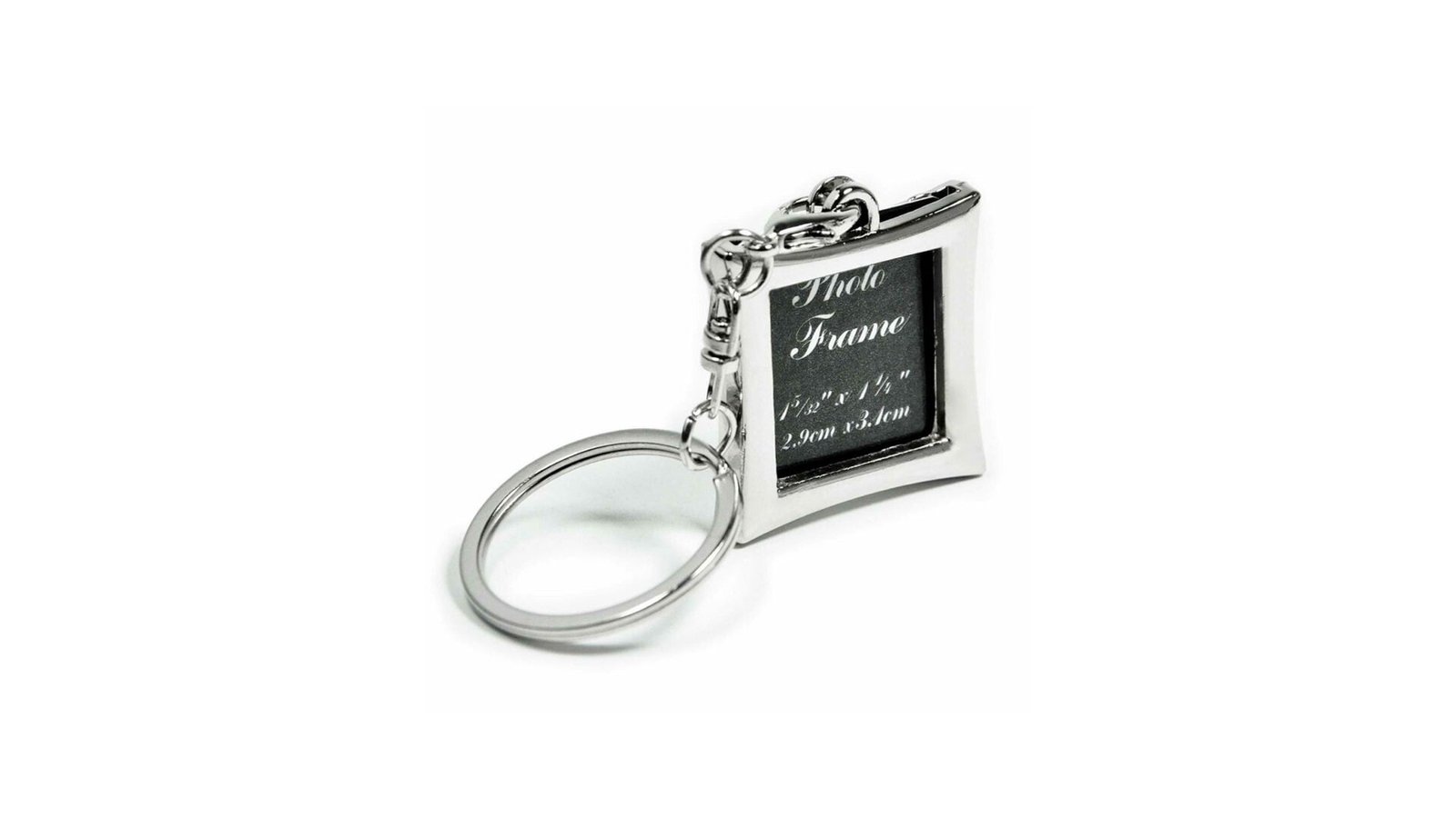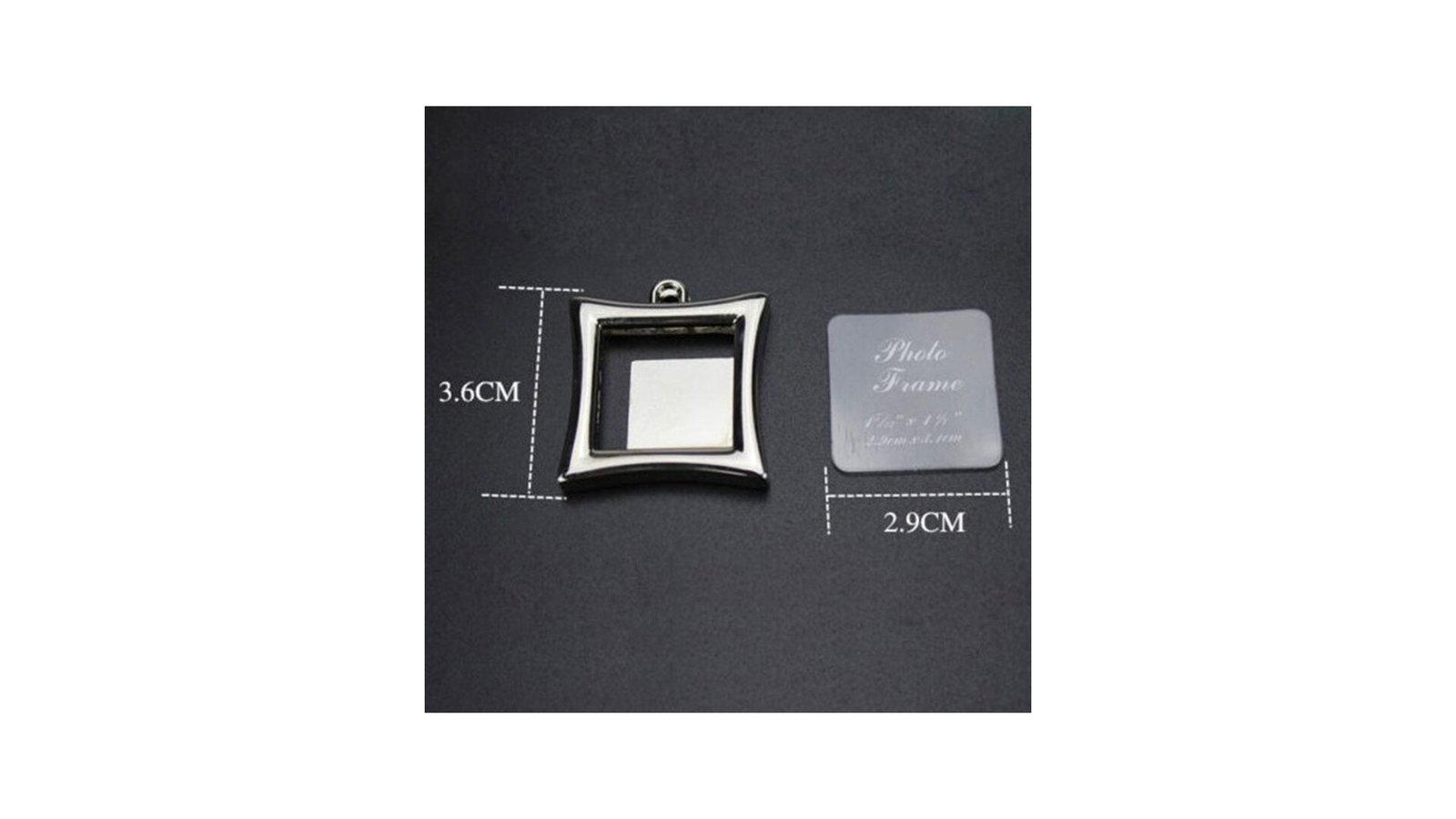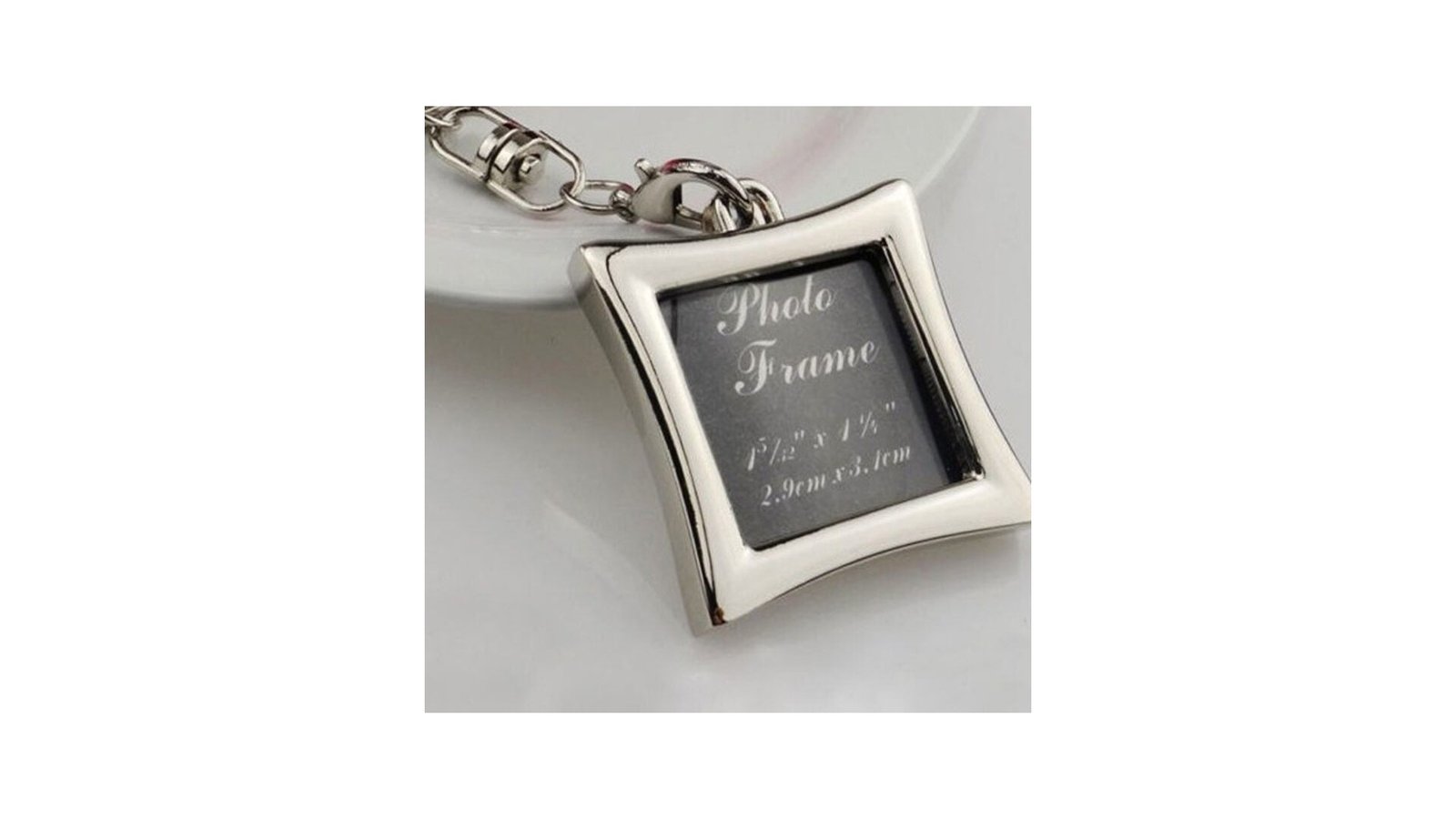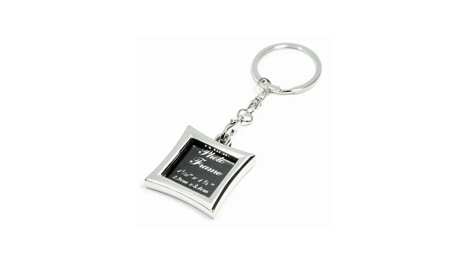 Breloc metalic inserție foto - pătrat breloc din metal ce se poate personaliza prin introducerea de poze în interiorul carcasei poza se introduce prin partea superioară dupa ce se detașează lanțul brelocului, dimensiune poză 2,9cm x 3,1cm spatele brelocului poate fi gravat materialul din care sunt fabricate brelocurile este un oțel inoxidabil de calitate și densitate înaltă brelocurile vin însoțite de o cutie neagră individuală și suport de burete negru în interior.