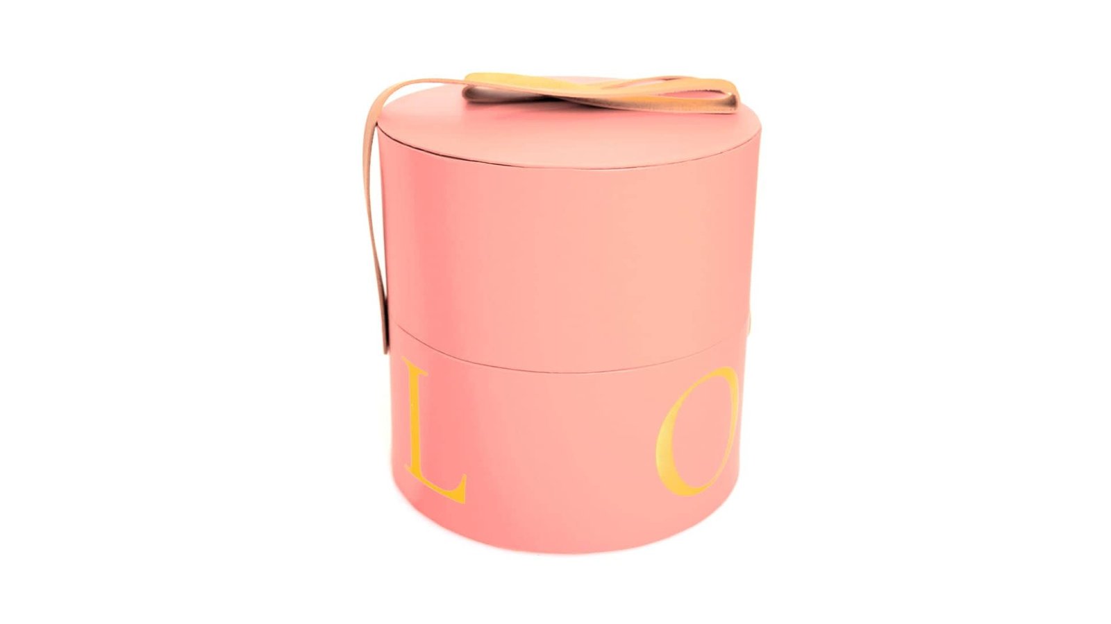 Set 2 cutii cilindrice cu mâner model Love - roz se pot folosi pentru ambalaje de flori, buchete, cadouri, produse handmade, decorațiuni și multe altele perfecte pentru evenimente cum ar fi: nunți, botezuri, Crăciun, Paște, Valentine’s Day, mărțișor, 8 martie, petreceri pentru copii, zile de naștere, etc. mâner de piele
