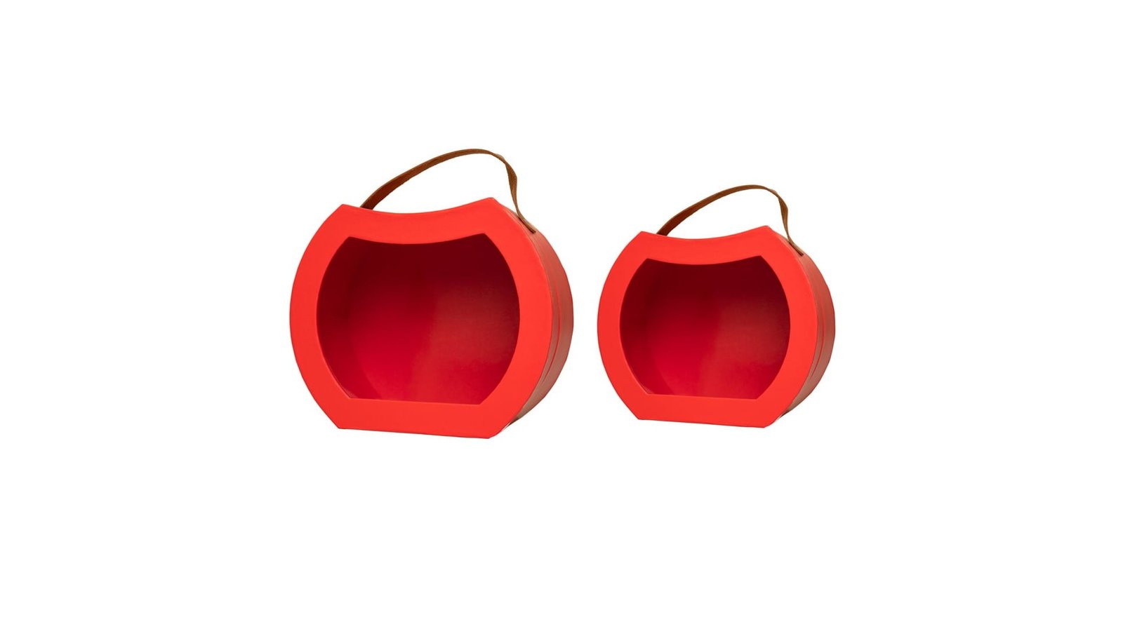 Set 2 cutii rotunjite cu mâner maro și fereastră - roșu se poate folosi pentru ambalaje de flori, buchete, cadouri, mărturii, produse handmade, decorațiuni și multe altele perfectă pentru evenimente cum ar fi: nunți, botezuri, Crăciun, Paște, Valentine's Day, mărțișor, 8 martie, petreceri pentru copii, zile de naștere, etc. mâner din piele întoarsă