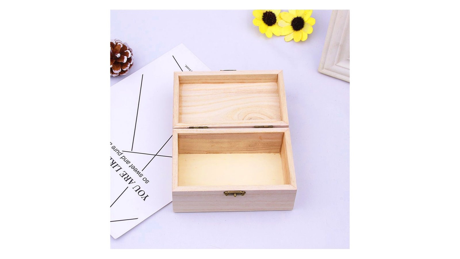 Cutie dreptunghiulară din lemn mică 9x6x5cm cutie din lemn de pin folosită în proiectele DIY ideală pentru personalizat prin tehnica șervețelului, decoupage, pictat, pirogravură și altele ambalată în pungă de plastic balamalele și închizătoarea sunt din metal poate fi folosită și ca o cutie de bijuterii material nefinisat ce permite lăcuire/vopsire/pictare/printare