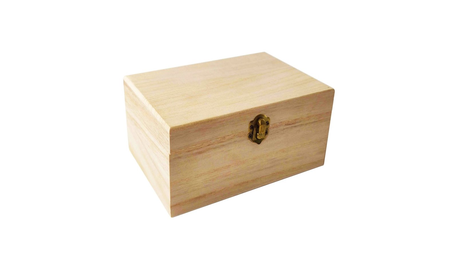 Cutie dreptunghiulară din lemn maxi 15x10x7cm cutie din lemn de pin folosită în proiectele DIY ideală pentru personalizat prin tehnica șervețelului, decoupage, pictat, pirogravură și altele ambalată în pungă de plastic balamalele și închizătoarea sunt din metal poate fi folosită și ca o cutie de bijuterii material nefinisat ce permite lăcuire/vopsire/pictare/printare