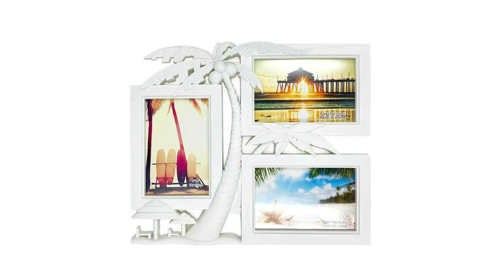 Ramă foto colaj 3 poze - model Plaja pozele se introduc prin spatele ramei rama se agață în agățătoarea ce se găsește pe spatele ramei Se pot introduce 3 poze 10x15cm temă ramă: zi onomastică, zi de naștere, membru nou al familiei, ziua mamei, ziua tatălui, aniversare, Valentine's Day, mărțișor, Crăciun, Paște rama este fabricată din plastic printr-un procedeu care se numește injecție de plastic pe matriță, astfel ramele pot lua orice formă dorită ramele sunt ambalate în folie de plastic și cutie de carton ce garantează siguranța la transport cutiile de carton pot fi reasamblate pentru a reintroduce rama în cutie după ce este personalizată