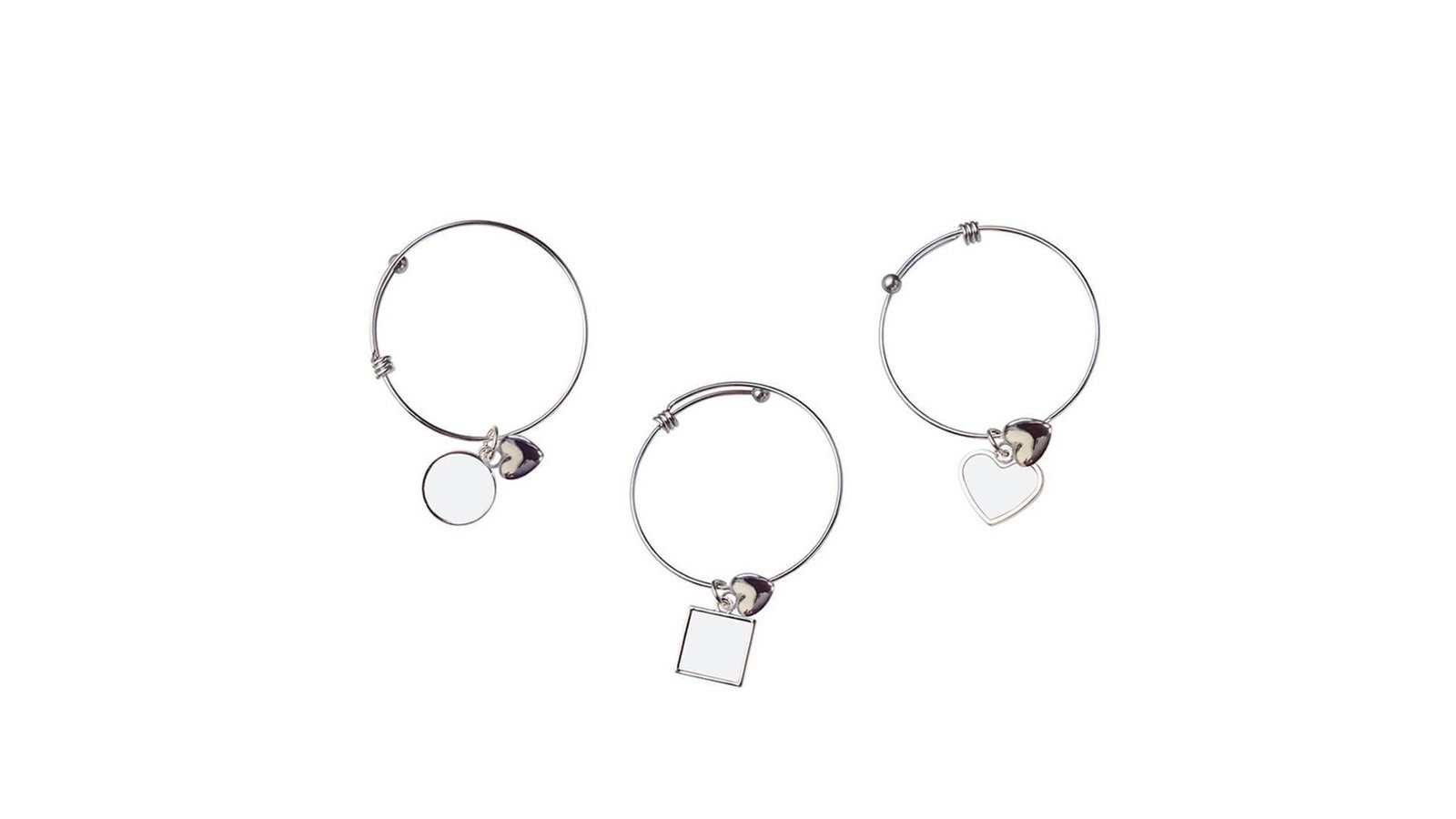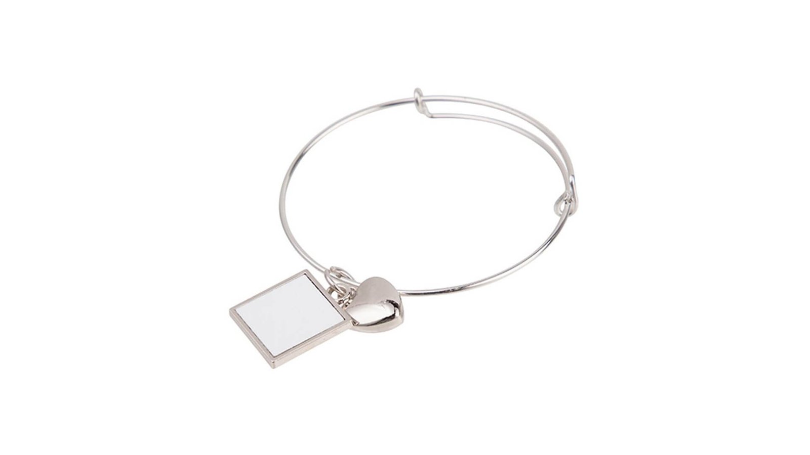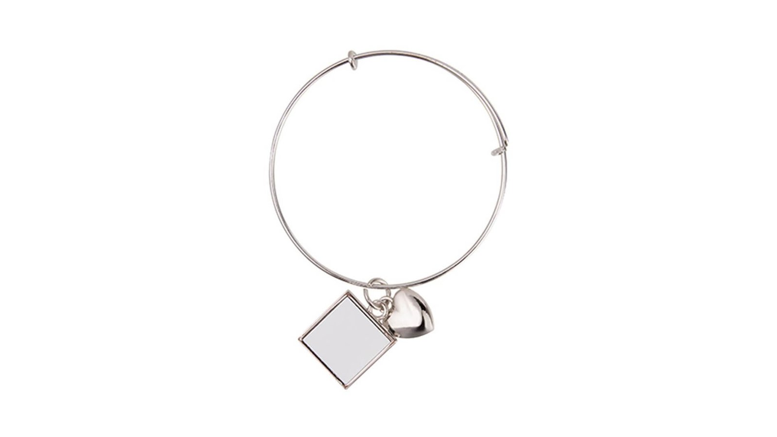 Brățară metalică cu pandantiv sublimabil - pătrat Brățară fabricată din metal cu pandantiv ce se pot personaliza prin sublimare Partea sublimabilă se introduce în presă separat și se imprimă După imprimare, partea sublimabilă se atașează pandantivului Partea sublimabilă este prevăzută cu o parte autoadezivă Partea sublimabilă este protejată de o membrană de plastic pentru a o proteja. Această membrană trebuie îndepărtată înaintea introducerii în presă Materialul din care este fabricată brățara este un oțel inoxidabil de calitate și densitate înaltă Ambalare în pungă de plastic.