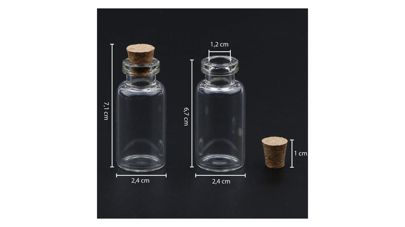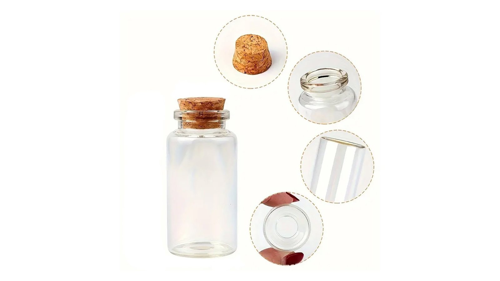 Sticluță transparentă reutilizabilă cu dop de plută, descoperiți o modalitate elegantă și ecologică de a stoca, organiza și transporta o varietate de articole. Caracteristici: Material durabil: Sticluța rezistentă și dopul de plută asigură durabilitate și sustenabilitate. Design transparent: Permite vizualizarea, facilitând identificarea și monitorizarea conținutului Dop etanș: Previne scurgerile și menține prospețimea lichidelor și a altor articole stocate. Utilizare: Păstrarea lichidelor: Perfectă pentru uleiuri esențiale, parfumuri, loțiuni, lichide DIY, cocktailuri artizanale, siropuri, cadouri, mostre și multe altele. Organizarea obiectelor mici: Ideală pentru a stoca și organiza pietricele decorative, nisip colorat, mostre de materiale și alte obiecte mici. Beneficii: Versatilitate: