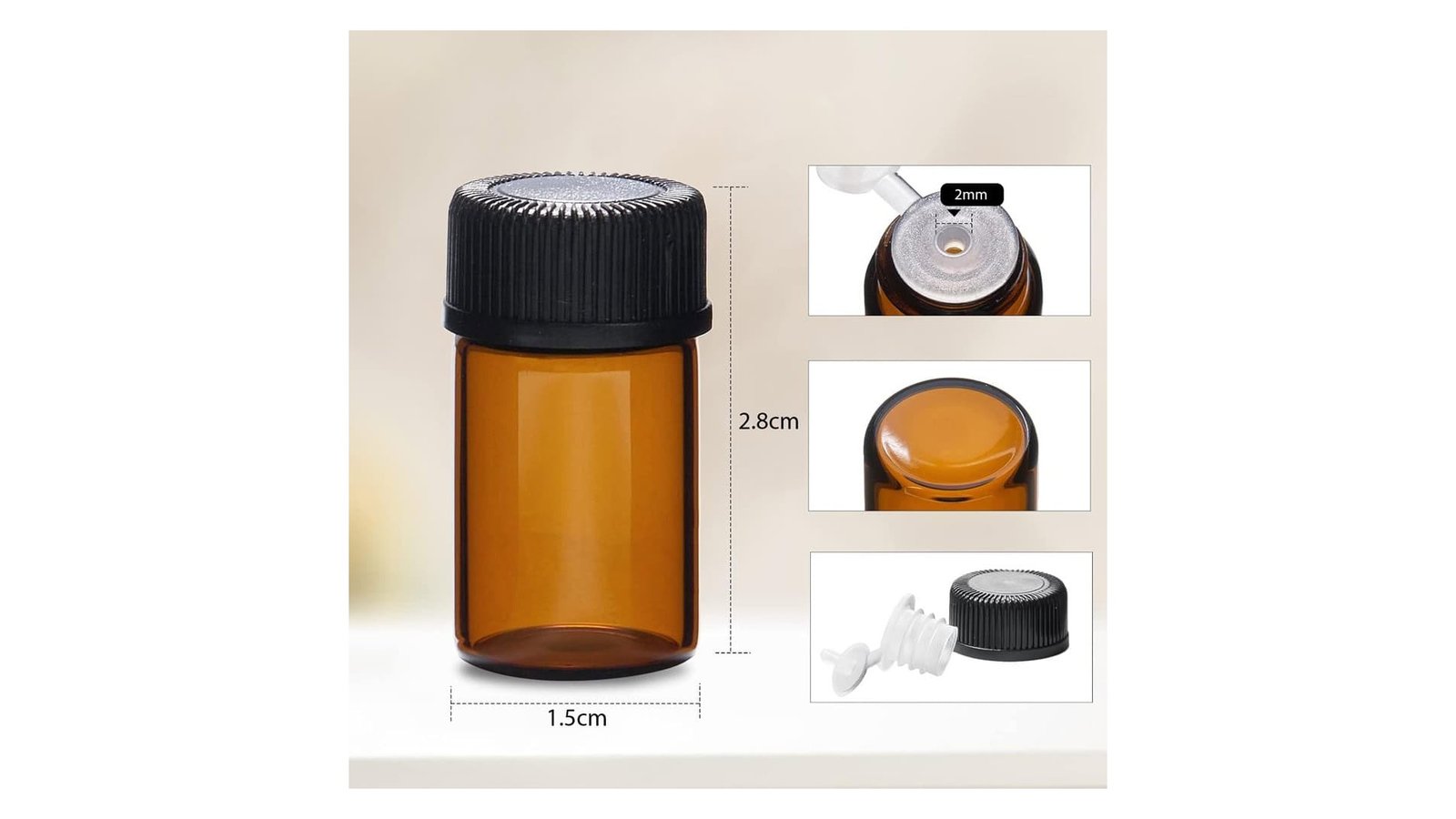 Sticluță ambră reutilizabilă cu picurător și capac negru - 2-3ml