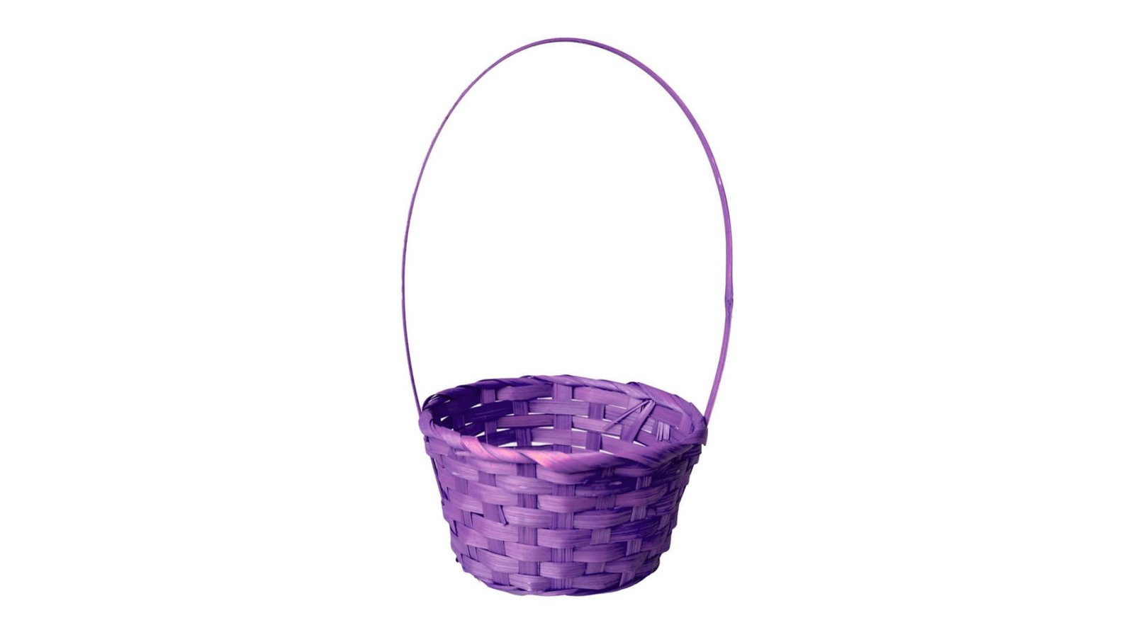 Coșuleț mediu ratan rotund cu mâner 18x10cm - mov se poate folosi pentru ambalaje de flori, buchete, trandafiri, cadouri, mărturii, produse handmade, decorațiuni și multe altele perfecte pentru evenimente cum ar fi: nunți, botezuri, Crăciun, Paște, Valentine's Day, mărțișor, 8 martie, petreceri pentru copii, zile de naștere, etc. mânerul (toarta) se livrează separat pentru a economisi spațiu mânerul se introduce printre împletiturile de ratan, iar pentru extra siguranță se recomandă și adăugarea de puțin lipici