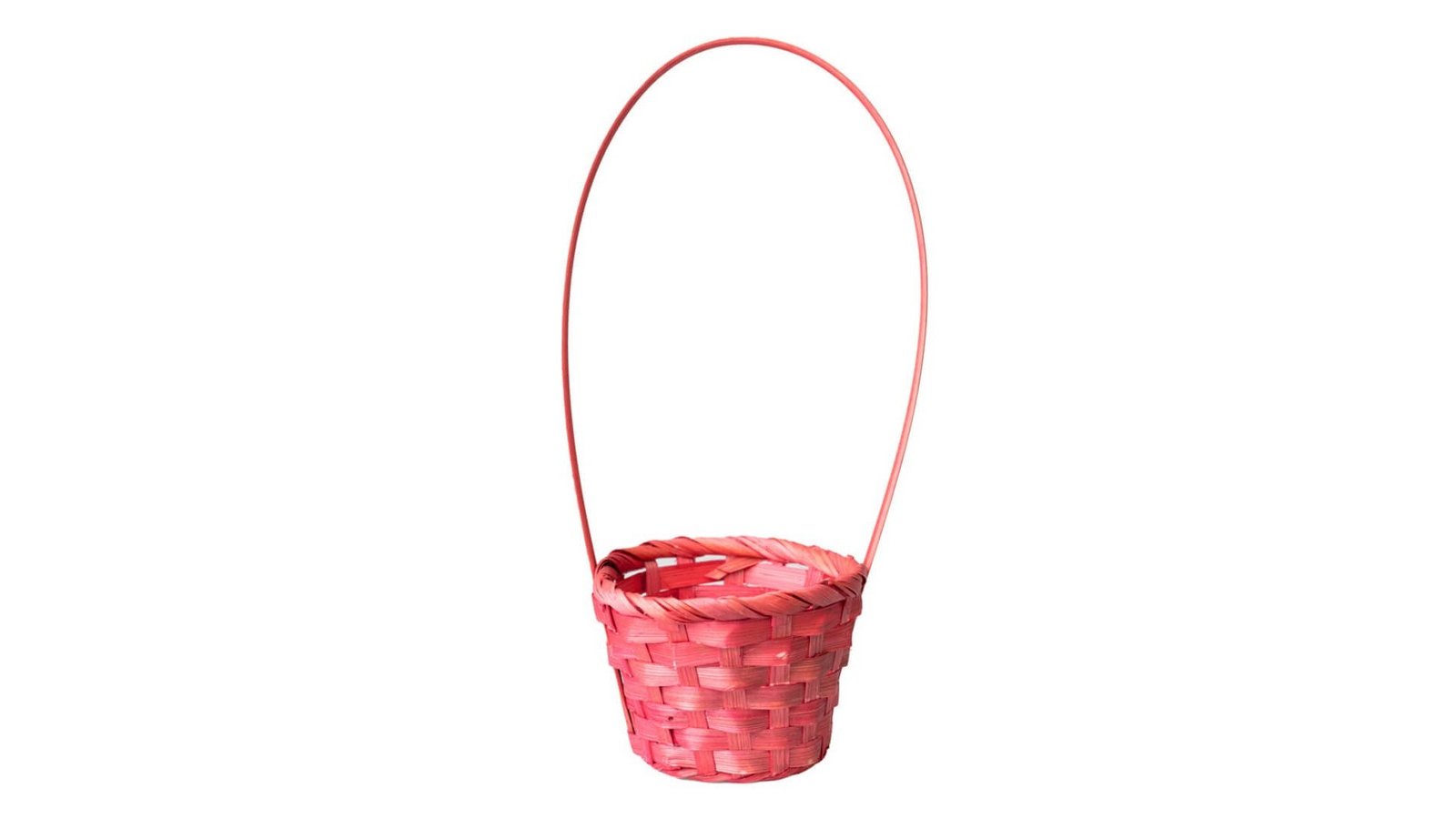 Coșuleț mediu ratan rotund cu mâner 18x10cm - roz se poate folosi pentru ambalaje de flori, buchete, trandafiri, cadouri, mărturii, produse handmade, decorațiuni și multe altele perfecte pentru evenimente cum ar fi: nunți, botezuri, Crăciun, Paște, Valentine's Day, mărțișor, 8 martie, petreceri pentru copii, zile de naștere, etc. mânerul (toarta) se livrează separat pentru a economisi spațiu mânerul se introduce printre împletiturile de ratan, iar pentru extra siguranță se recomandă și adăugarea de puțin lipici