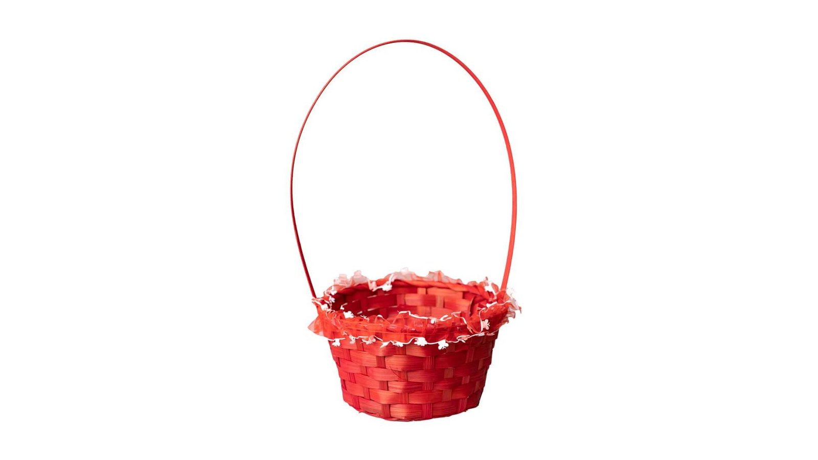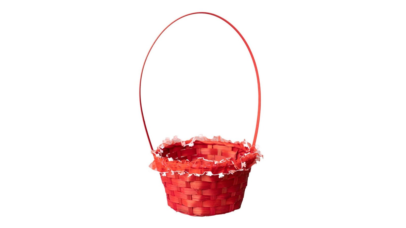Coșuleț mediu ratan rotund cu mâner și dantelă 18x10cm - roșu se poate folosi pentru ambalaje de flori, buchete, trandafiri, cadouri, mărturii, produse handmade, decorațiuni și multe altele perfecte pentru evenimente cum ar fi: nunți, botezuri, Crăciun, Paște, Valentine's Day, mărțișor, 8 martie, petreceri pentru copii, zile de naștere, etc. mânerul (toarta) se livrează separat pentru a economisi spațiu mânerul se introduce printre împletiturile de ratan, iar pentru extra siguranță se recomandă și adăugarea de puțin lipici