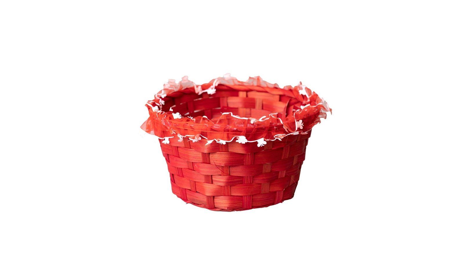 Coșuleț mediu ratan rotund cu mâner și dantelă 18x10cm - roșu
