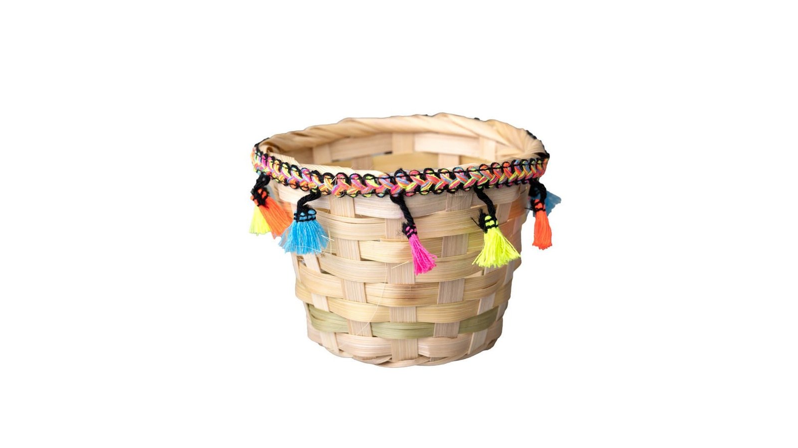 Coșuleț ratan rotund cu ciucuri 13x9cm - lemn deschis se poate folosi pentru ambalaje de flori, buchete, trandafiri, cadouri, mărturii, produse handmade, decorațiuni și multe altele perfecte pentru evenimente cum ar fi: nunți, botezuri, Crăciun, Paște, Valentine's Day, mărțișor, 8 martie, petreceri pentru copii, zile de naștere, etc.