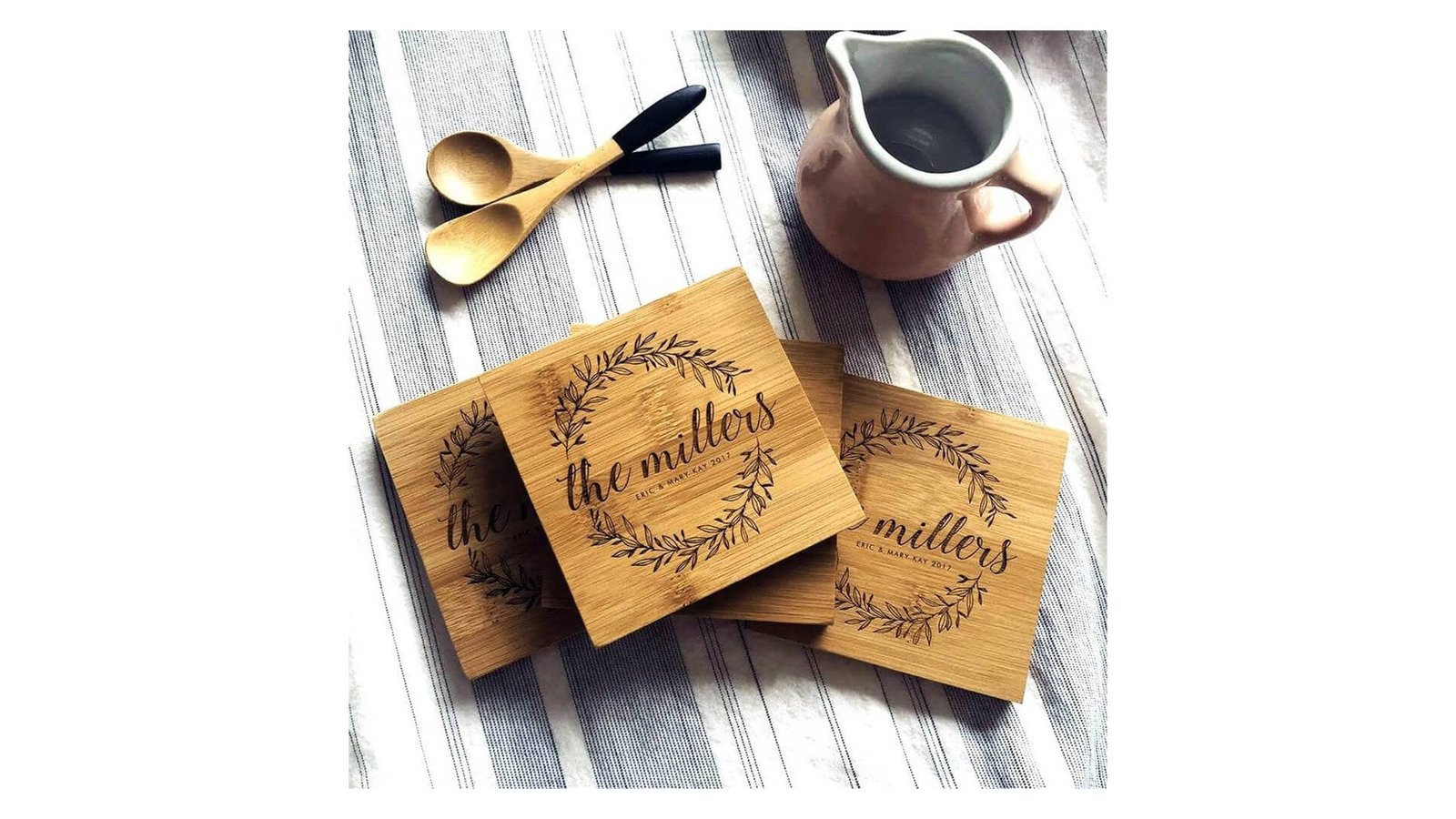 Set de 4 suporturi de pahar din bambus prețul este pentru 1 set format din 4 suporturi dimensiuni suport 10 x 10 x 0,7 cm compatibil cu imprimarea prin gravură laser, serigrafie, print UV, sau transfer termic ambalate în cutie de carton reciclabilă ideale pentru cadouri personalizate prin gravură