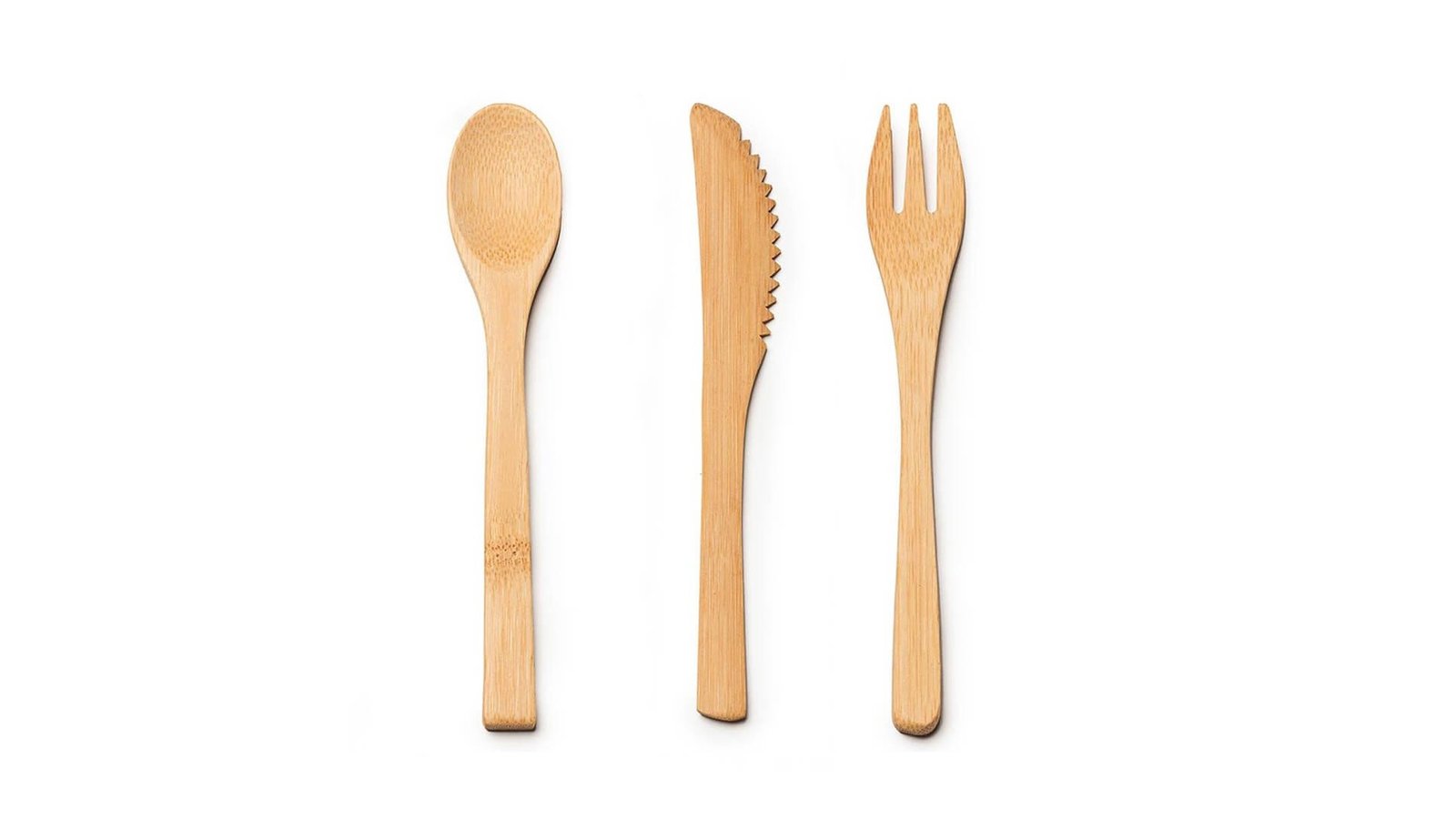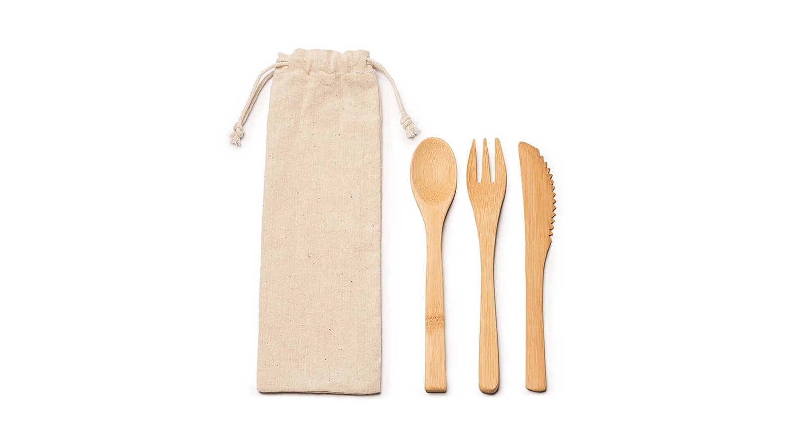 Set de tacâmuri din lemn în săculeț de canvas conține 1 cuțit, o furculiță și o lingură, toate din lemn tacâmurile se pot personaliza prin gravură laser, serigrafie, print UV, sau tampografie săculețul din bumbac se poate personaliza prin transfer termic, închiderea este din sfoară