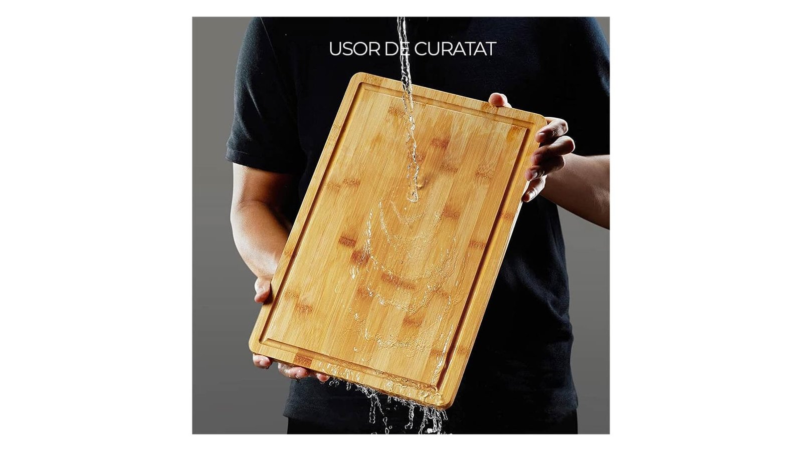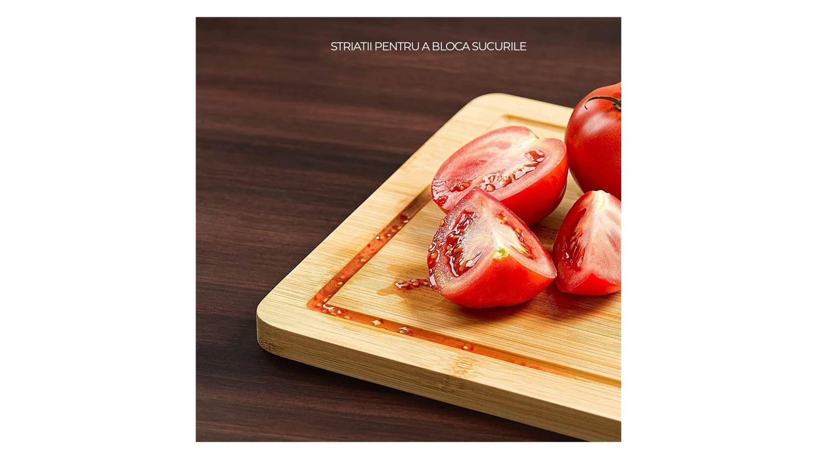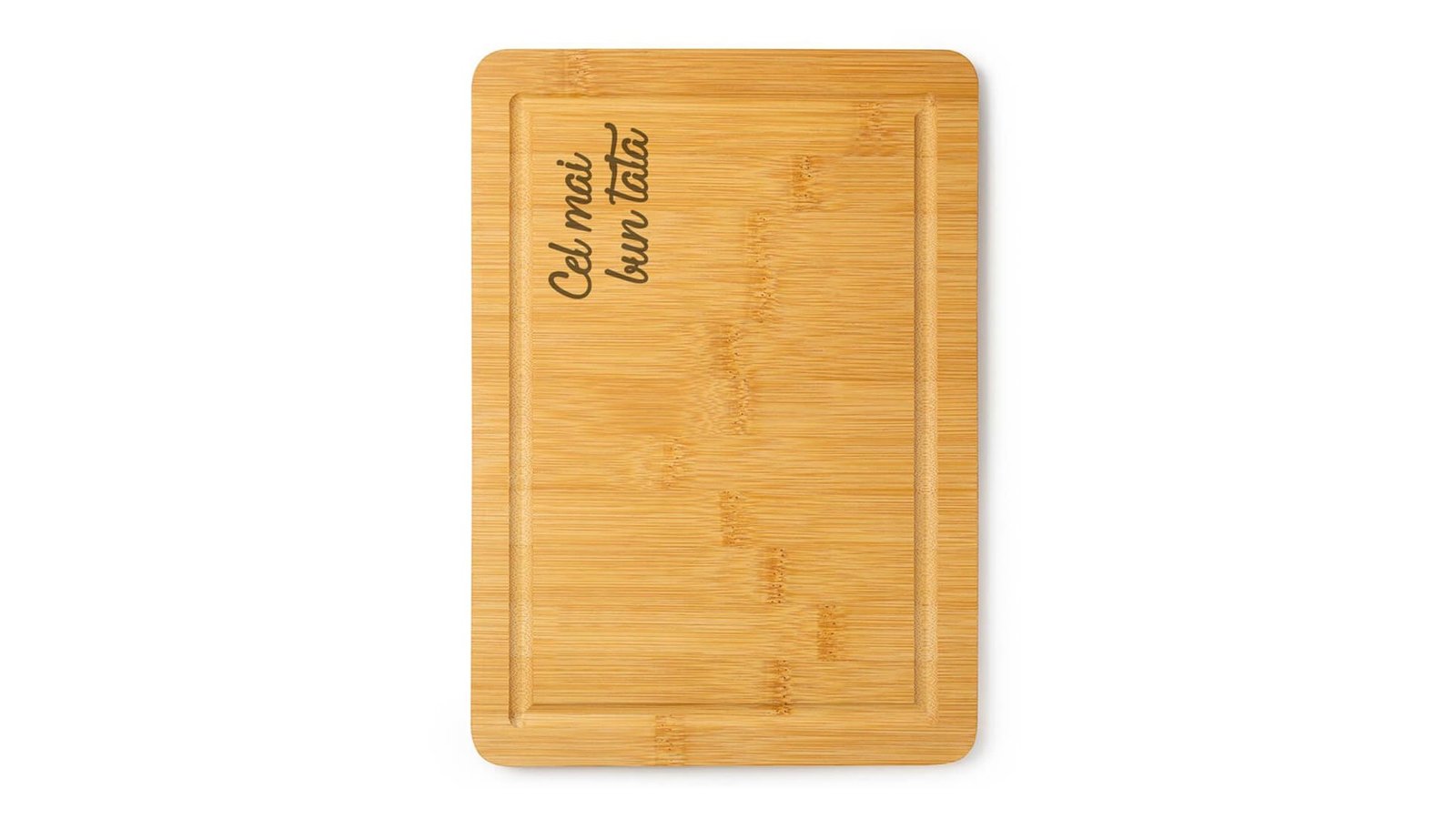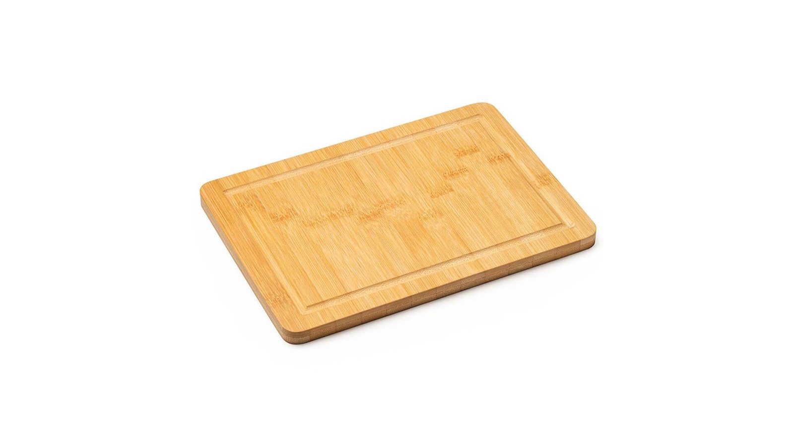 Tocător din lemn ANGUS fabricat din lemn de bambus, are striații pe margine pentru oprirea lichidelor ambalare în folie de plastic se poate personaliza prin gravură laser sau serigrafie