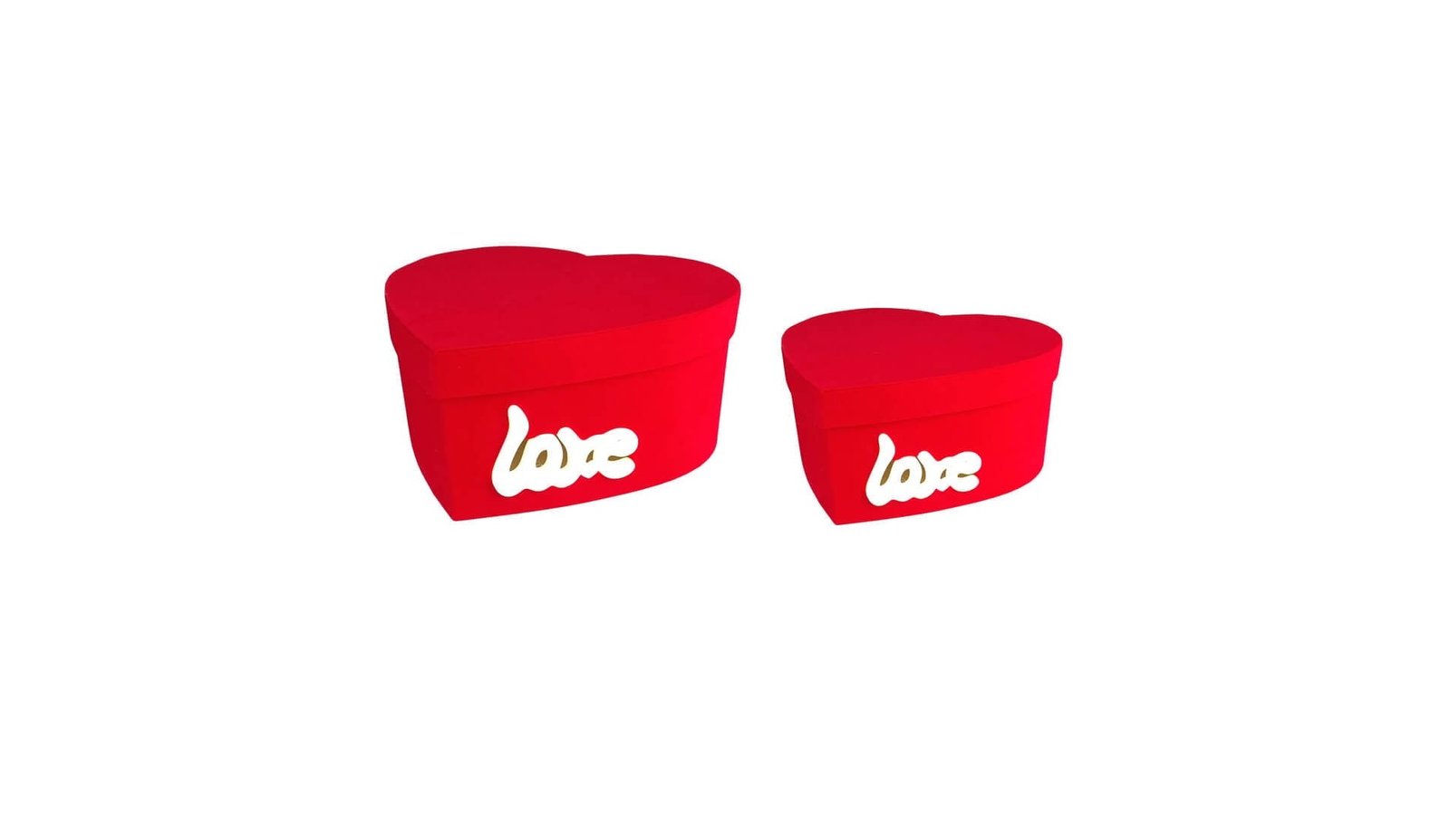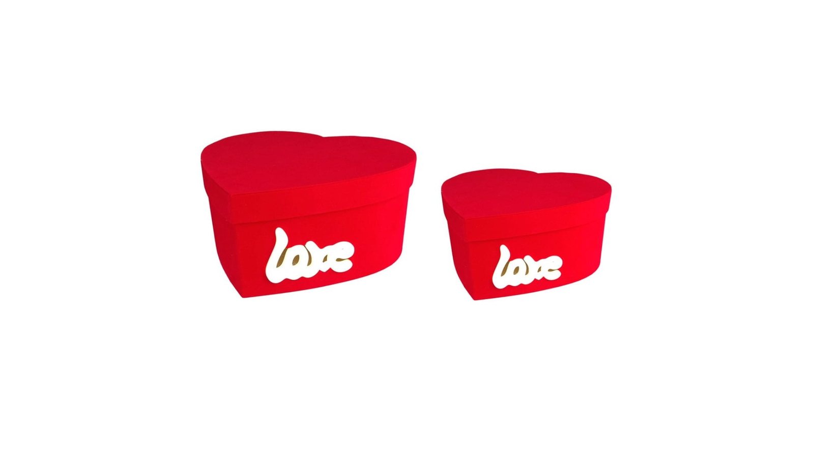 Set 2 cutii inimă catifelate Love luminat - roșu