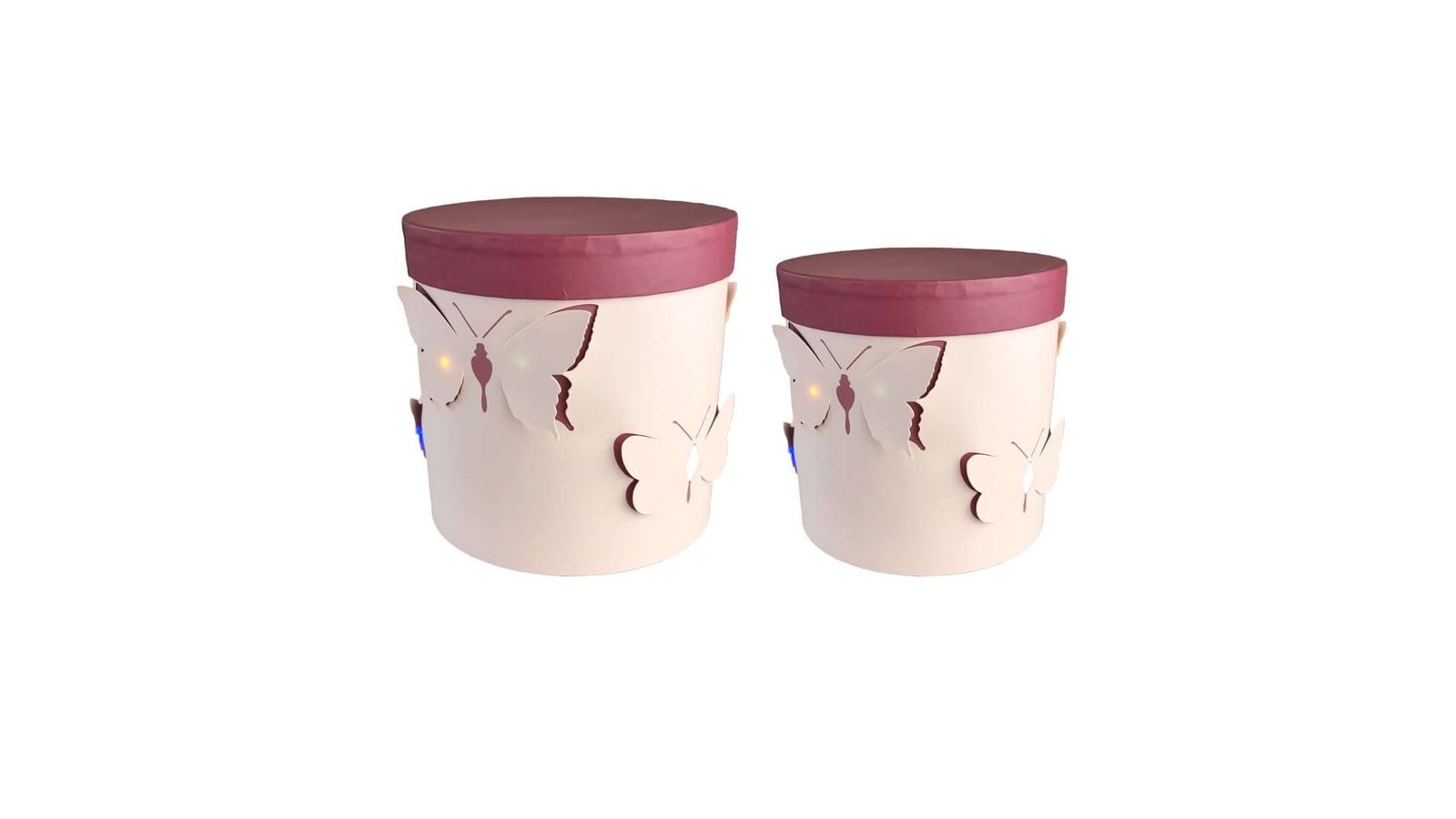 Set 2 cutii rotunde cu fluturi și lumini - roz