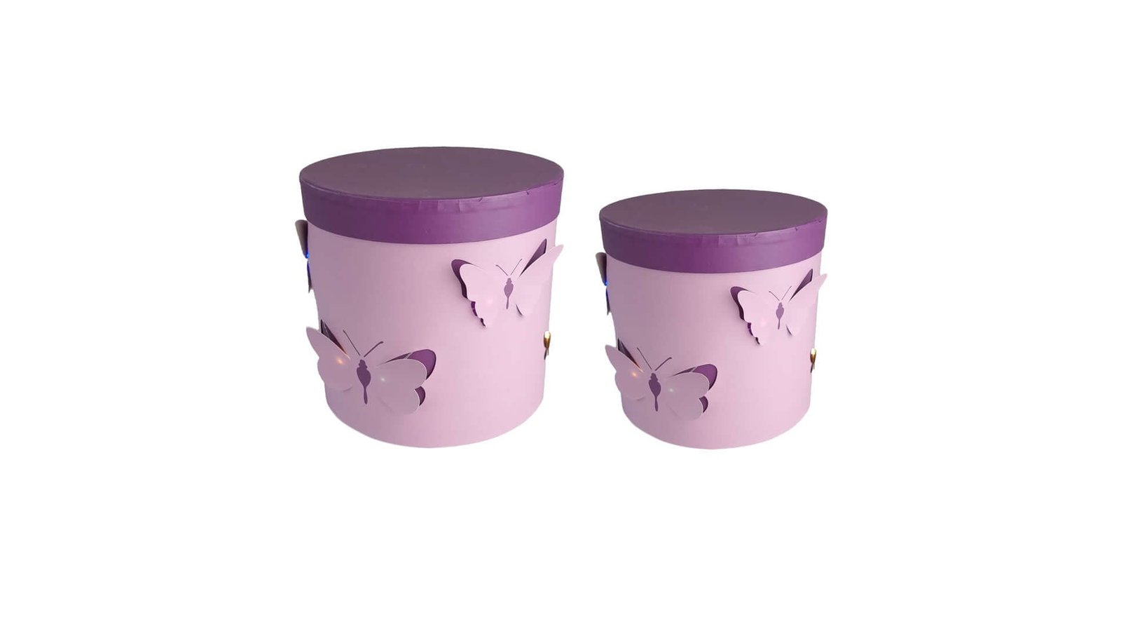 Set 2 cutii rotunde cu fluturi și lumini - mov