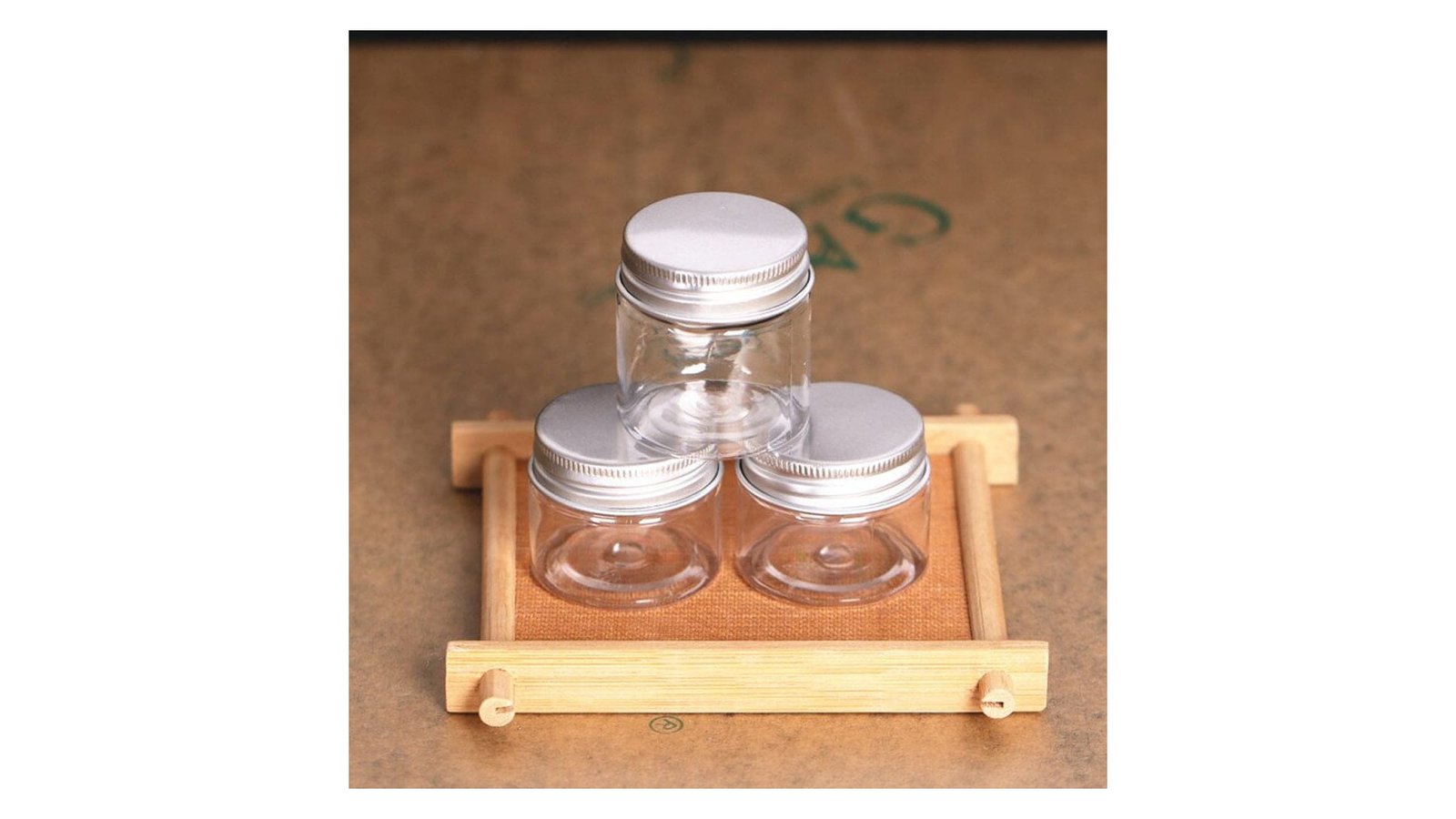 Borcan rotund transparent din plastic cu capac aluminiu - 30ml