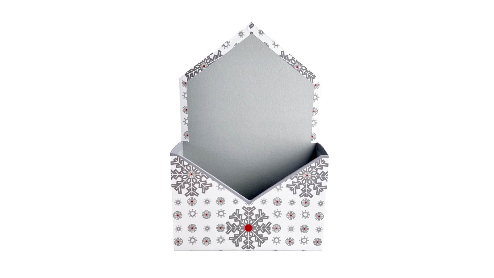 Cutie tip plic de Crăciun – model fulgi de gheață albi