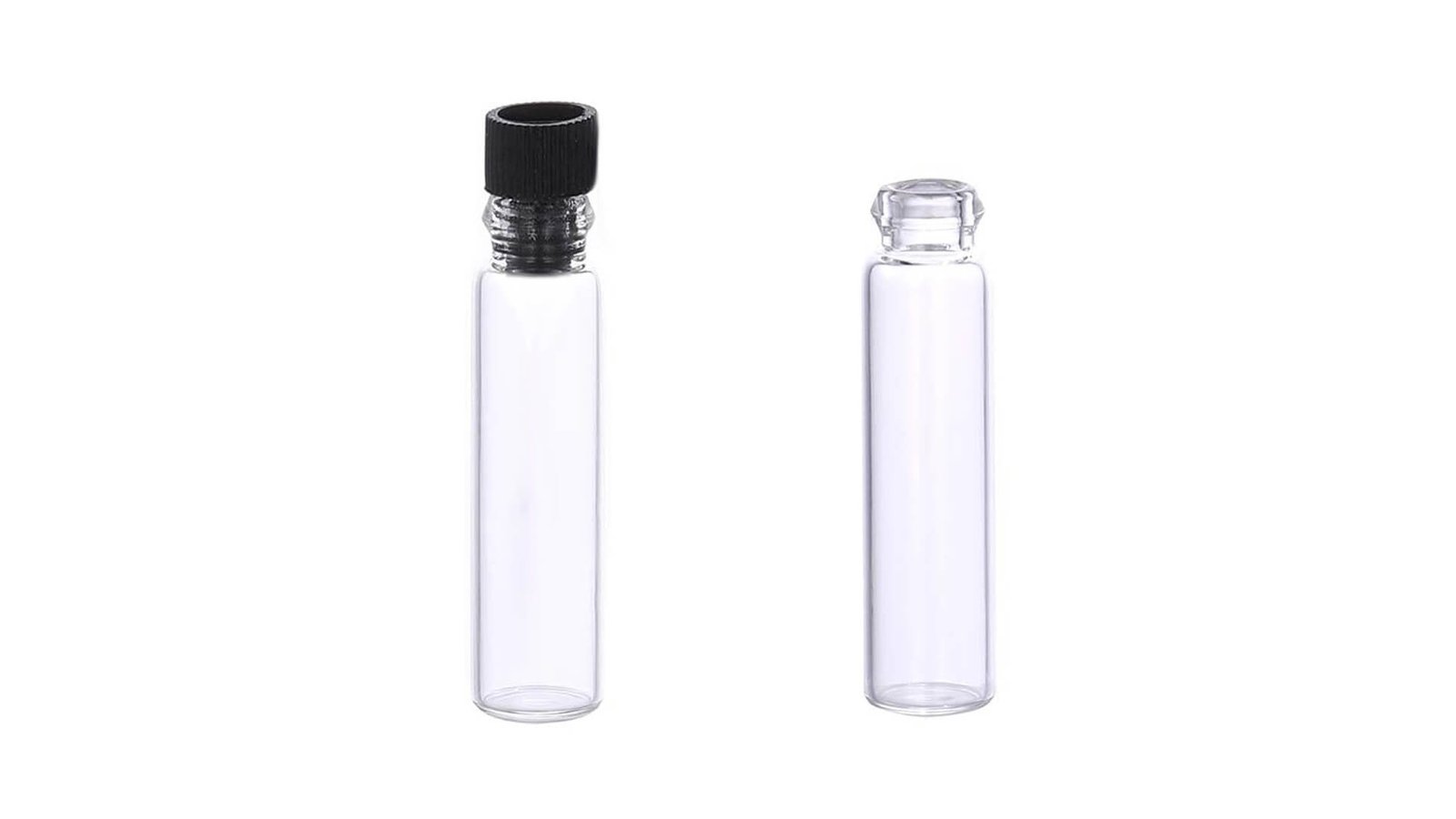 Sticluță transparentă cu capac negru 2ml se poate folosi pentru esență de mir, tincturi, mostre de parfum, uleiuri esențiale, mărturii și multe altele capac negru