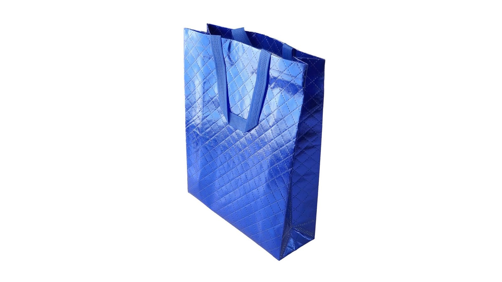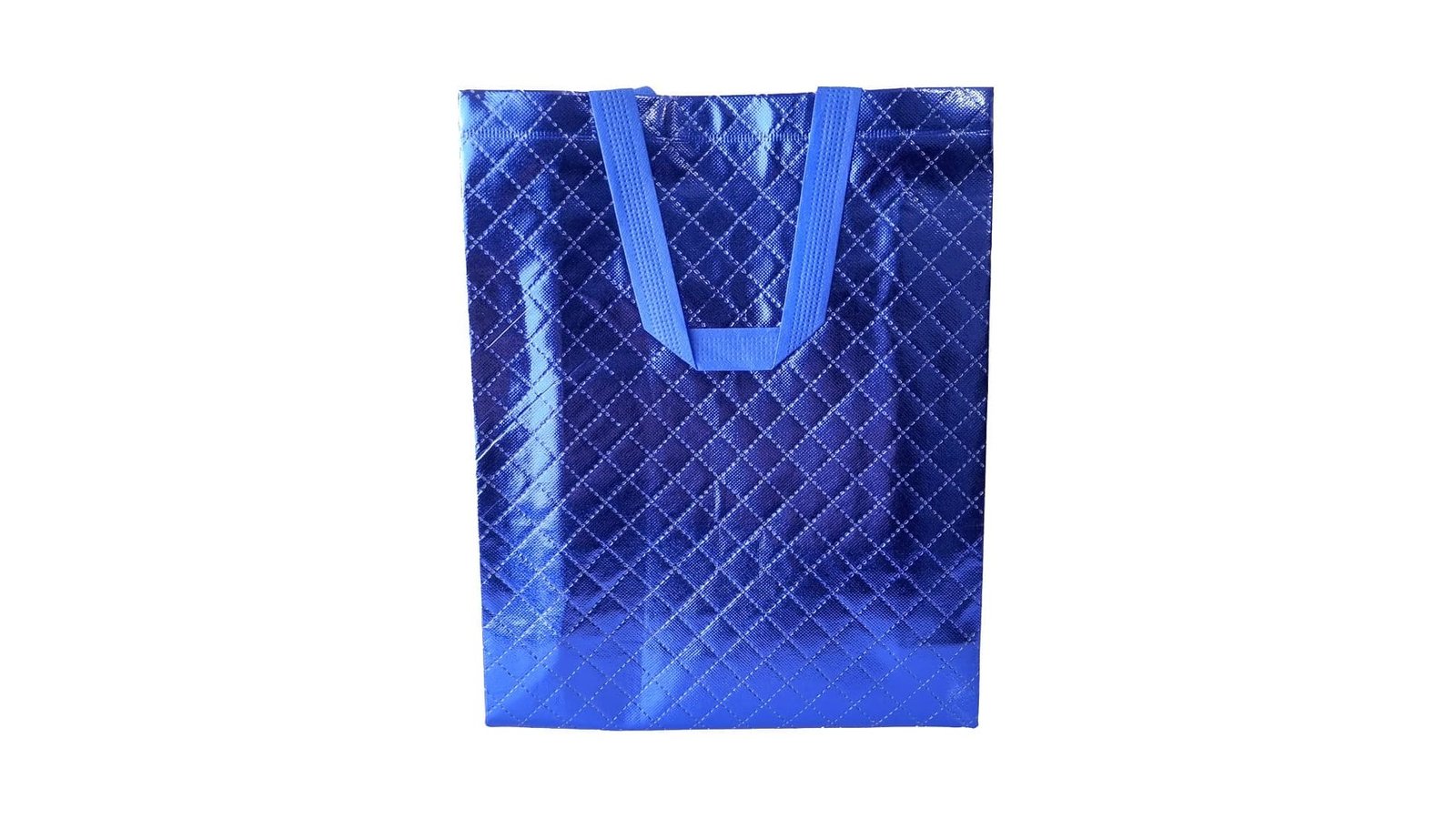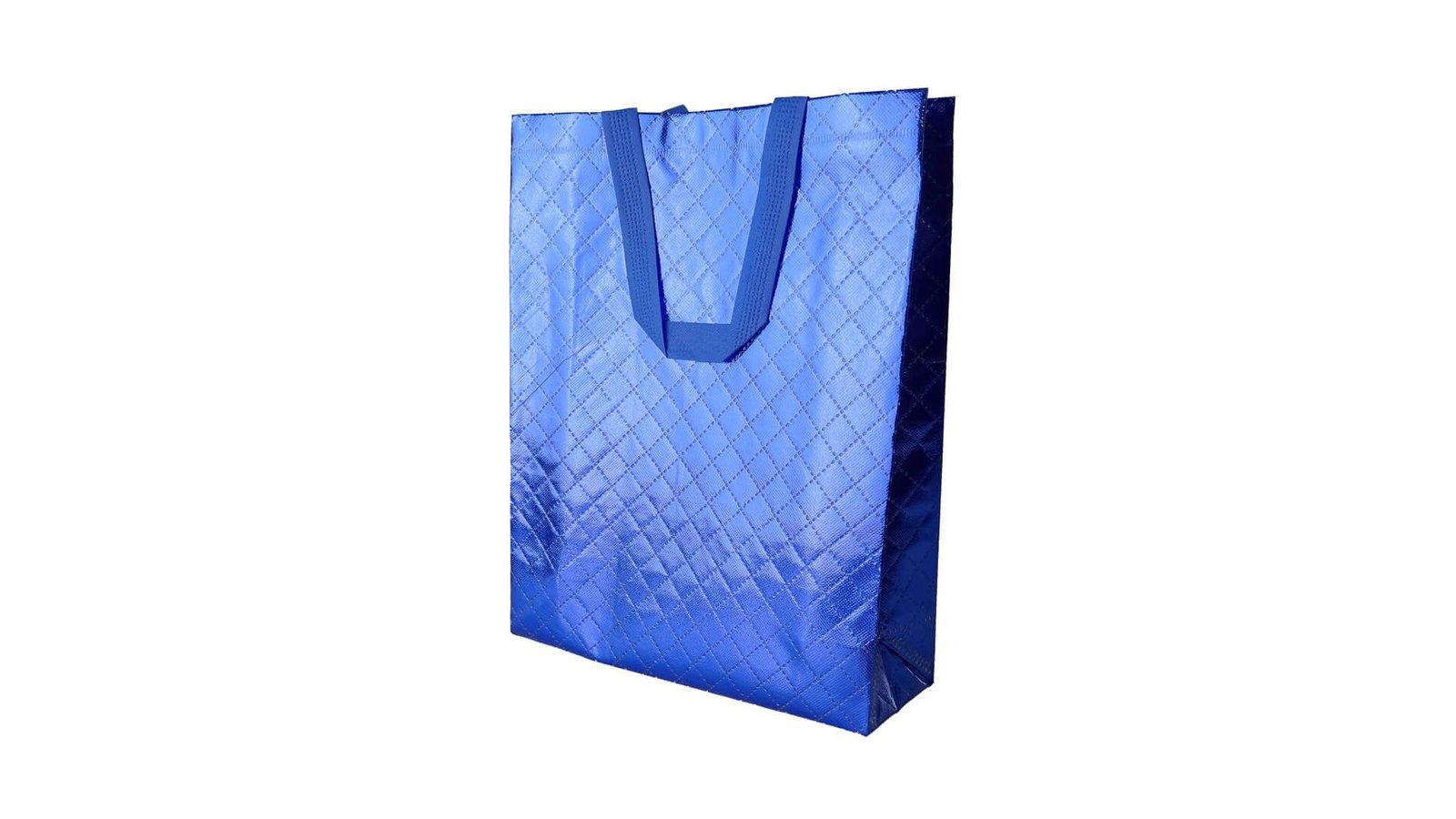 Geantă lucioasă non-woven cu țesătura romb 30x36cm - albastru