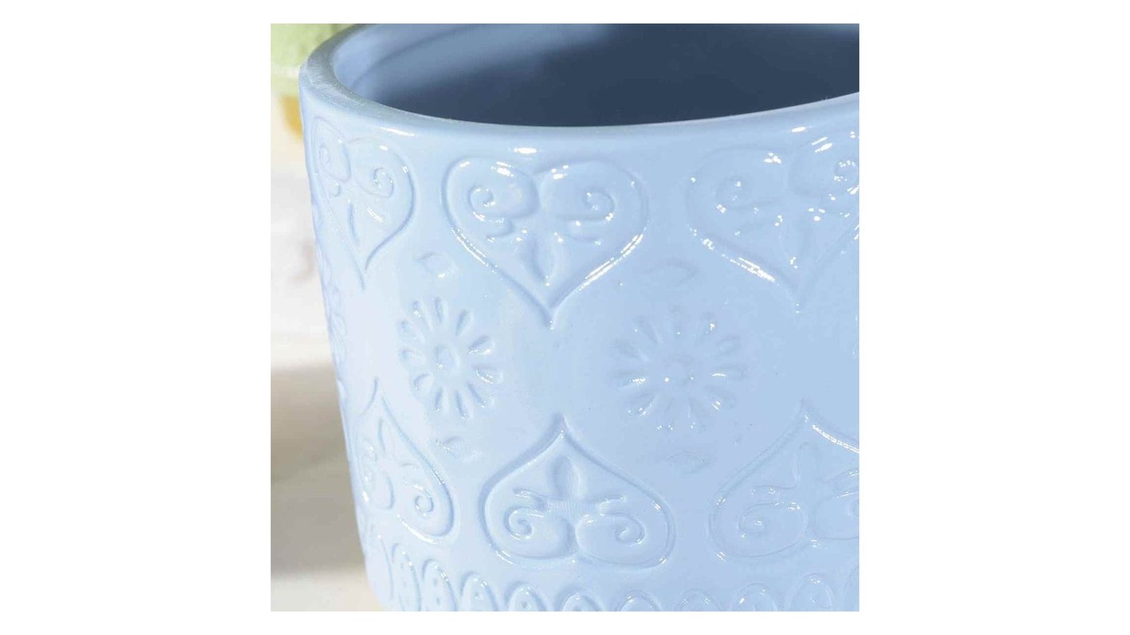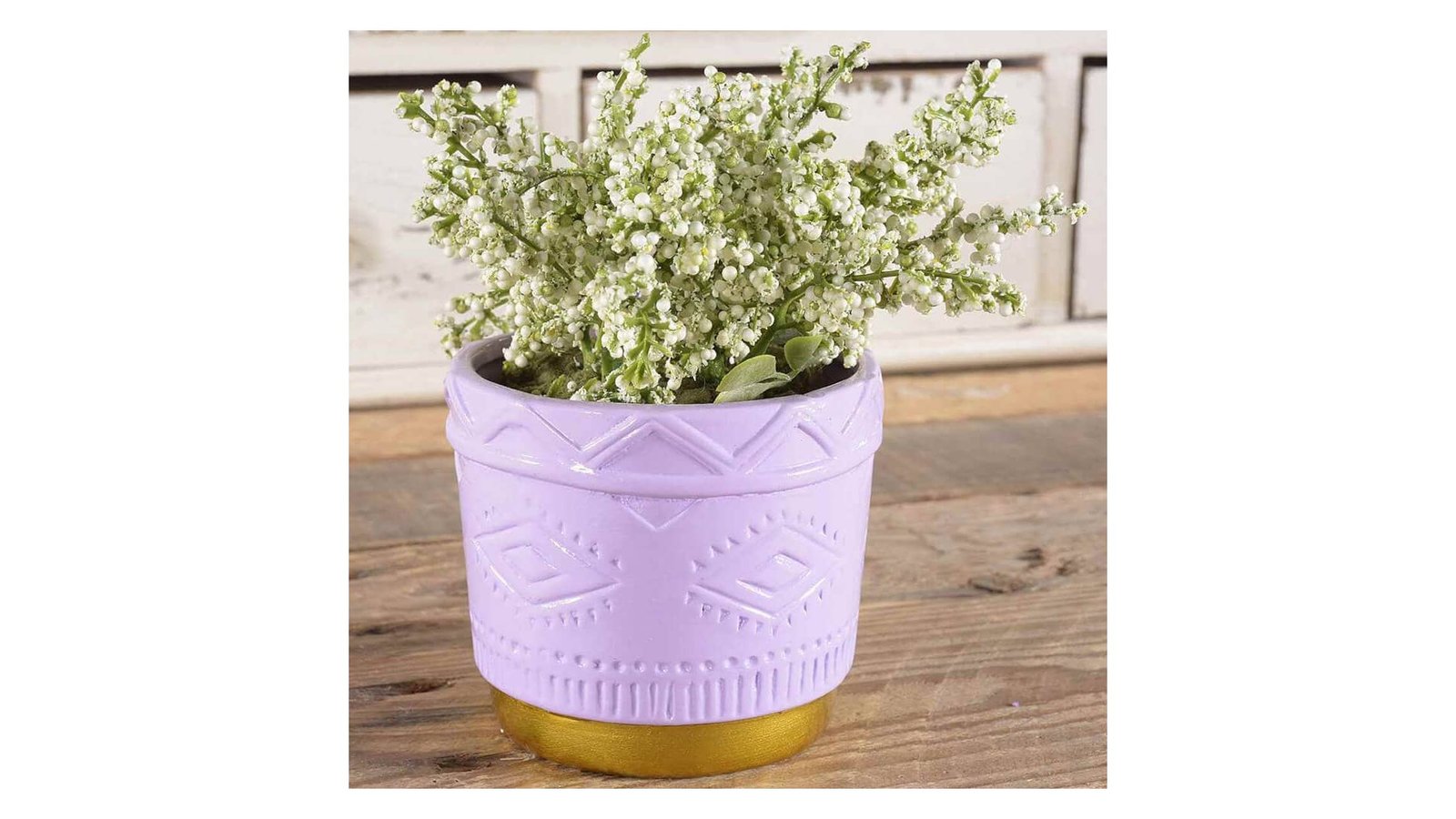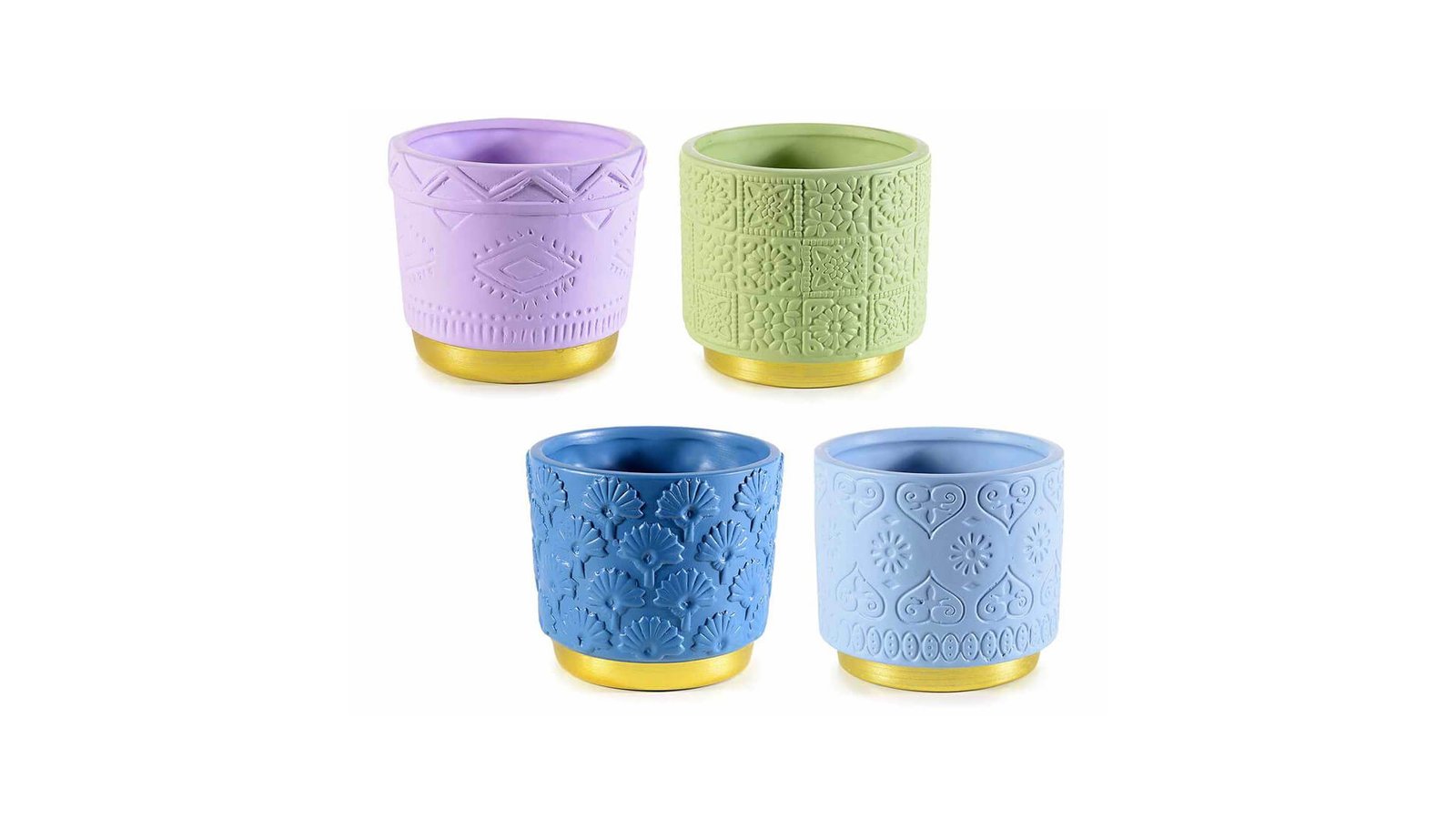 Vază ceramică cu margine aurie - model aleatoriu Vaza are o gravură delicată patru modele: mov, verde, albastru, bleu. Modelul nu se poate alege, se trimite aleatoriu