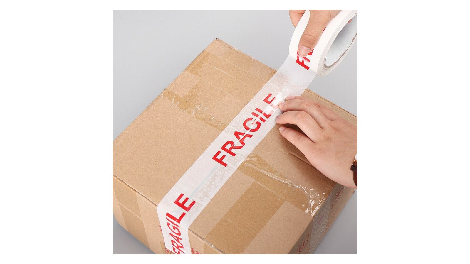 Bandă adezivă imprimeu FRAGILE 5cm x 66m Perfectă pentru marcarea și identificarea obiectelor fragile în timpul transportului sau depozitării Banda adezivă puternică cu text "FRAGILE" imprimat pe ea Adezivul de înaltă calitate asigură că obiectele rămân în siguranță la locul lor Se recomandă folosirea acestei benzi pe cutiile care conțin obiecte fragile cum ar fi: sticlă, porțelan, obiecte de artă sau de colecție, jucării, etc