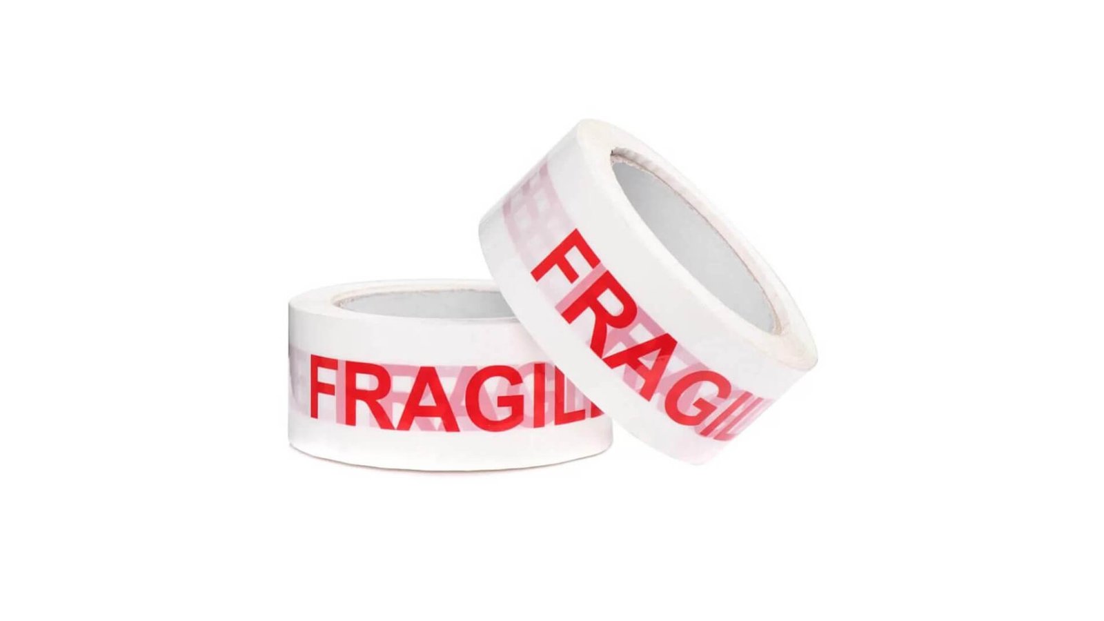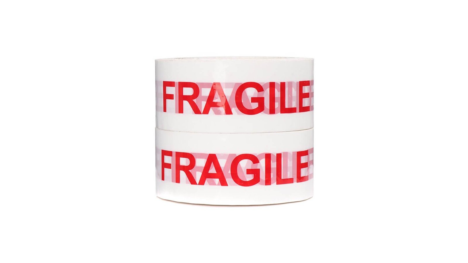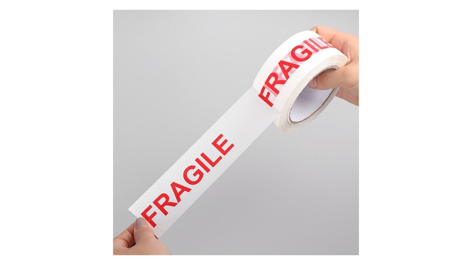 Bandă adezivă imprimeu FRAGILE 5cm x 300m Perfectă pentru marcarea și identificarea obiectelor fragile în timpul transportului sau depozitării Banda adezivă puternică cu text "FRAGILE" imprimat pe ea Adezivul de înaltă calitate asigură că obiectele rămân în siguranță la locul lor Se recomandă folosirea acestei benzi pe cutiile care conțin obiecte fragile cum ar fi: sticlă, porțelan, obiecte de artă sau de colecție, jucării, etc