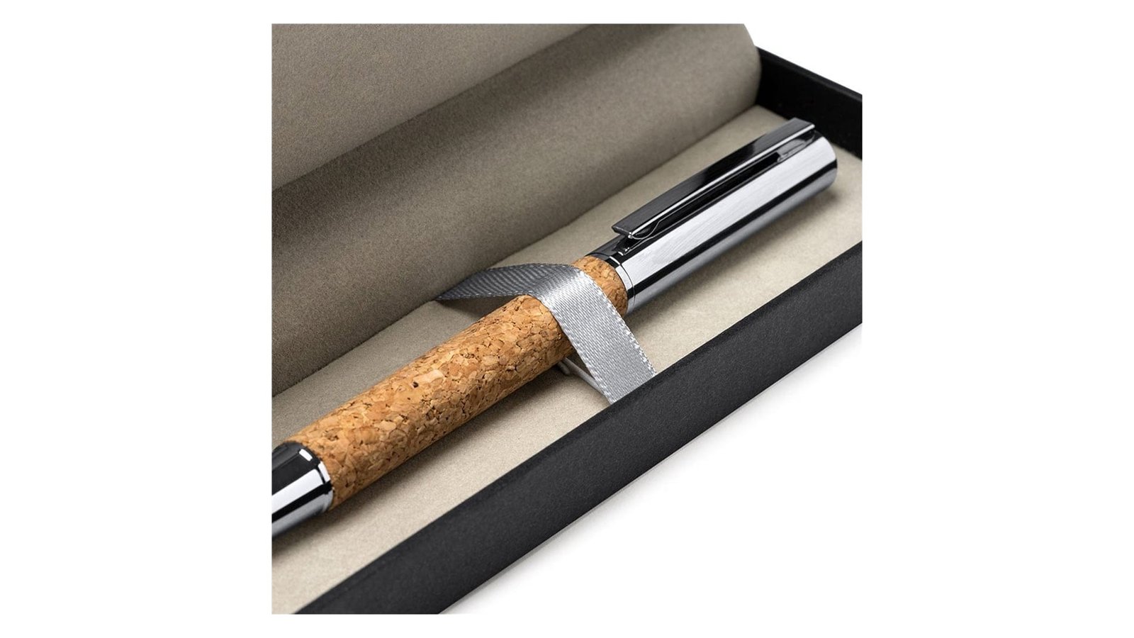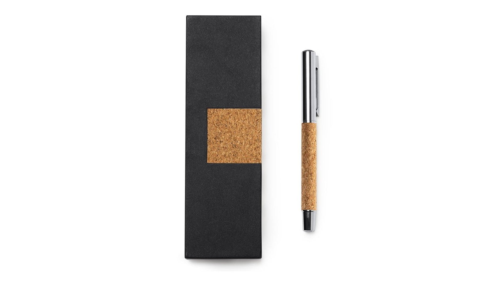Pix premium din plută în cutie individuală MAXIMUS Acesta este fabricat din plută naturală și metal, mina este albastră Cutie fabricată din carton cu inserție de plută naturală Poate fi personalizat prin tampografie, gravură sau print UV; de asemenea și cutia poate fi personalizată Dimensiuni cutie individuală: 18 cm X 5,7 cm X 3,3 cm Ambalare în pungă individuală