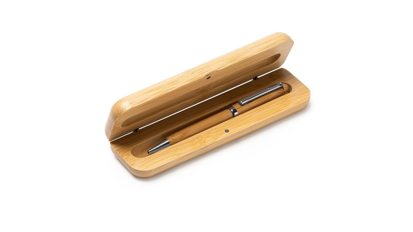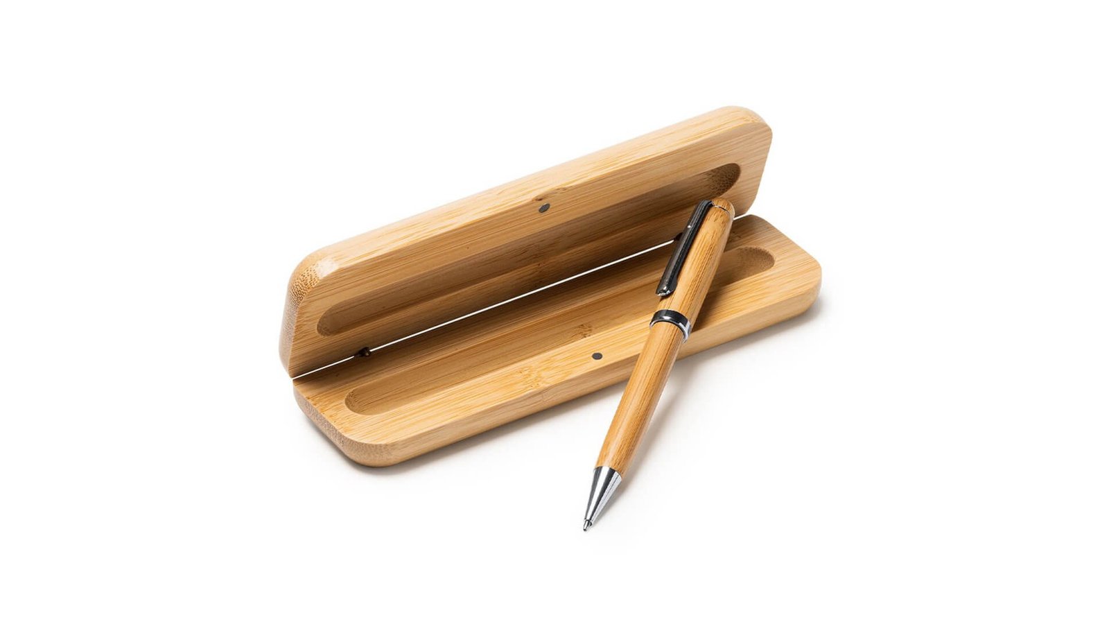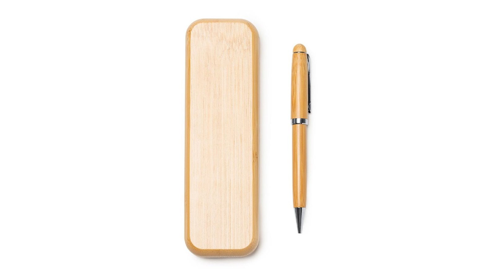 Pix premium din lemn în cutie individuală DOMINIC Acesta este fabricat din lemn de bambus și metal, mina este albastră Cutie fabricată din lemn cu închidere magnetică Poate fi personalizat prin tampografie, gravură sau print UV; de asemenea și cutia poate fi personalizată Dimensiuni cutie individuală: 17,5cm X 5,7cm X 2,5cm Ambalare în pungă individuală