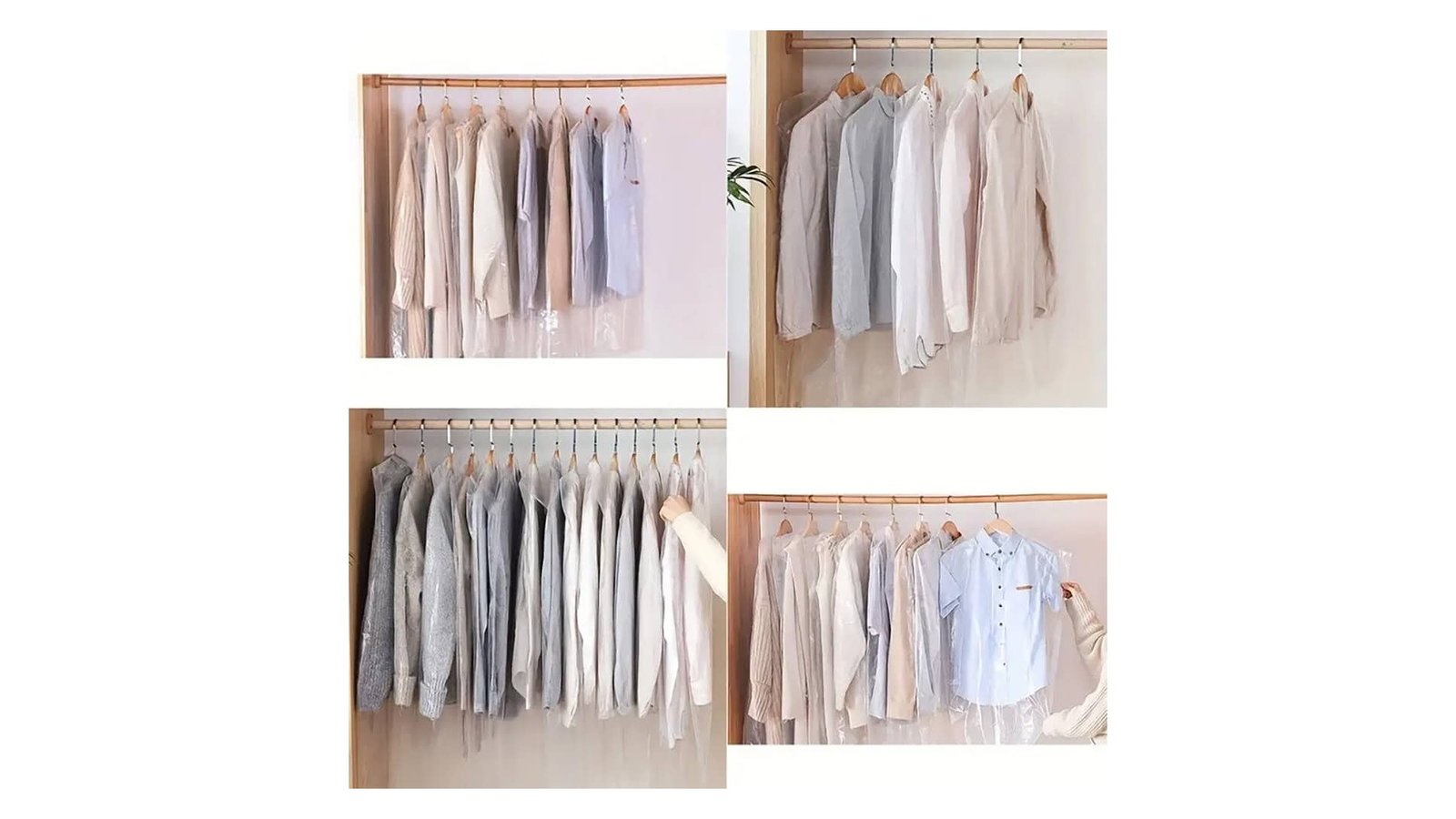 Huse transparente pentru haine sunt soluția perfectă pentru a păstra hainele organizate, protejate și vizibile în același timp. Caracteristici: Permit o vizibilitate clară a hainelor tale, facilitând identificarea rapidă a pieselor dorite. Construcție rezistentă și durabilă pentru a proteja hainele de praf, murdărie și umezeală Formă ergonomică pentru a se potrivi perfect cu majoritatea tipurilor de haine Utilizare: Călătorii și mutări: Protejează-ți hainele de praf și murdărie în timpul călătoriilor sau mutărilor Organizare: Simplifică organizarea hainelor în dulapuri, sertare sau pe rafturi Depozitare: Păstrează hainele sezoniere sau mai puțin utilizate în siguranță și ferite de praf Beneficii: Găsește rapid hainele dorite fără a fi nevoit să le scoți din huse, economisind timp și efort.
