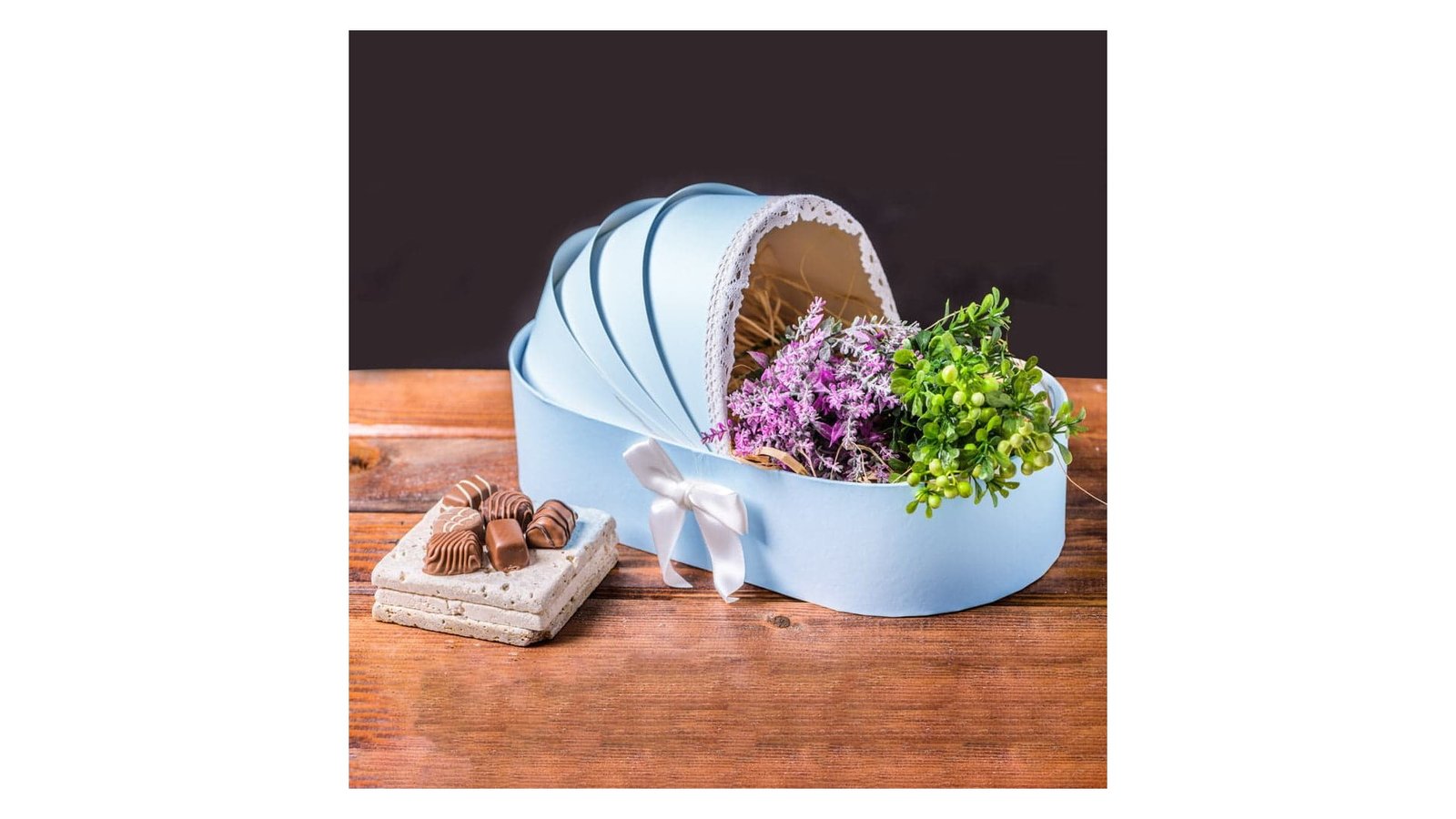 Cutie tip landou - bleu, dimensiune 33x20x8cm se poate folosi pentru ambalaje de flori, buchete, cadouri, mărturii, produse handmade, decorațiuni și multe altele perfectă pentru evenimente cum ar fi: nunți, botezuri, Crăciun, Paște, Valentine's Day, mărțișor, 8 martie, petreceri pentru copii, zile de naștere, etc. interior rezistent la apă