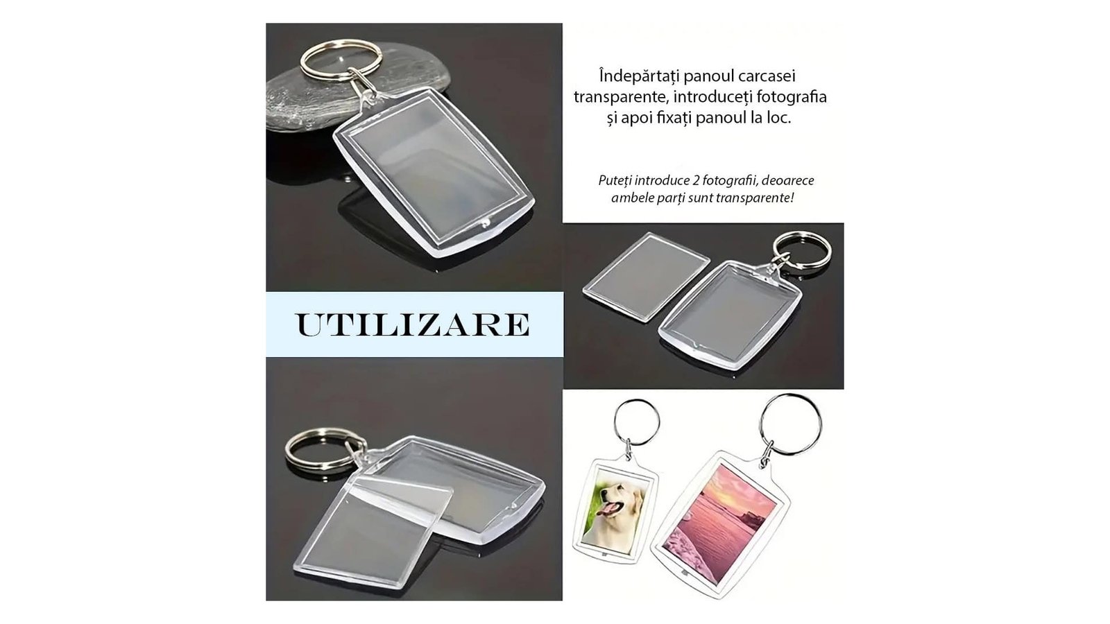 Breloc dreptunghiular transparent inserție foto vă permite să inserați o fotografie preferată sau o imagine amuzantă adăugând o notă personală vieții de zi cu zi. Caracteristici: Dimensiunea pozei: 4,6x3,2cm Transparent: Permite vizualizarea clară a fotografiei inserate Durabil: Fabricat din plastic rezistent la zgârieturi și lovituri Ușor de utilizat: Deschideți brelocul, introduceți fotografia și închideți-l din nou Ambalare: Fiecare breloc este ambalat intr-o pungă de plastic proprie Utilizare: Chei: Atașați brelocul la cheile de casă, mașină sau birou Rucsacuri: Agățați brelocul de rucsac pentru a-l personaliza și a-l face mai ușor de identificat Altele: Cadouri, accesorii handmade, proiecte DIY, suveniruri, amintiri memorabile și altele Beneficii: Organizare: Menține cheile la îndemân