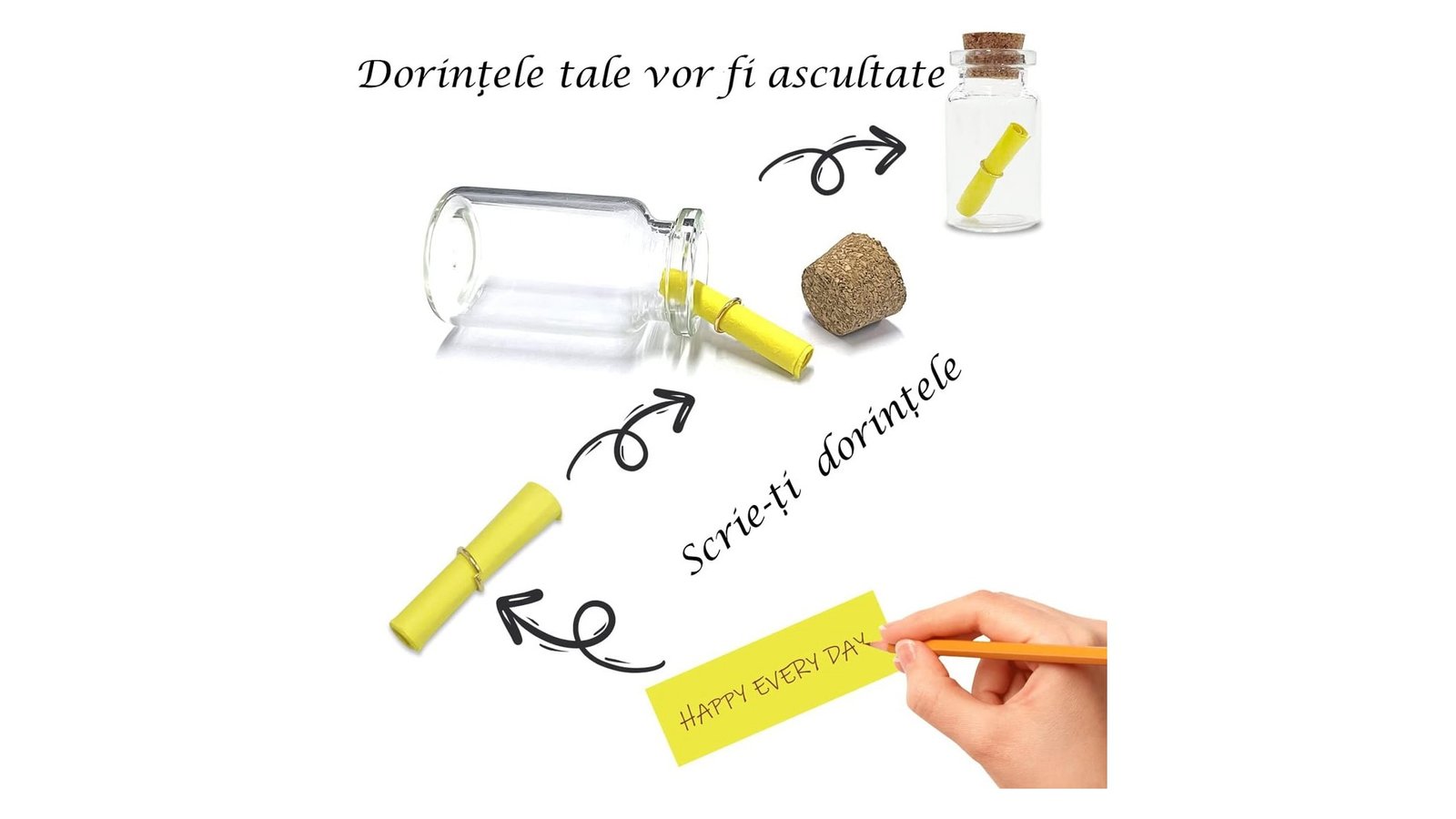Sticluță transparentă reutilizabilă cu dop de plută, descoperiți o modalitate elegantă și ecologică de a stoca, organiza și transporta o varietate de articole. Caracteristici: Material durabil: Sticluța rezistentă și dopul de plută asigură durabilitate și sustenabilitate. Design transparent: Permite vizualizarea, facilitând identificarea și monitorizarea conținutului Dop etanș: Previne scurgerile și menține prospețimea lichidelor și a altor articole stocate. Utilizare: Păstrarea lichidelor: Perfectă pentru uleiuri esențiale, parfumuri, loțiuni, lichide DIY, cocktailuri artizanale, siropuri, cadouri, mostre și multe altele. Organizarea obiectelor mici: Ideală pentru a stoca și organiza pietricele decorative, nisip colorat, mostre de materiale și alte obiecte mici. Beneficii: Versatilitate: Potrivită pentru o varietate de utilizări, de la stocarea lichidelor la organizarea obiectelor mici. Eleganță: Designul minimalist și dopul de plută naturală adaugă o notă rafinată decorului dumneavoastră. Ecologică: O alternativă sustenabilă la recipientele din plastic, contribuind la reducerea deșeurilor și la protejarea mediului. Componentele produsului pot fi împachetate separat pentru a economisi spațiul.